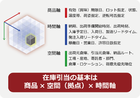 【特長3】 商品軸・時間軸・空間軸でのダイナミックな変化に対応する 高度な在庫引当エンジン |