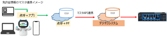 また、免許証マスタに関しては自動同期をさせることが可能で、免許証更新情報の内容を「点呼+シリーズ」からデジタコシステムへ自動同期させることにより二重登録の煩わしさを無くすことができます。