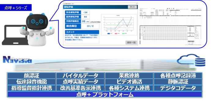 点呼+シリーズに「デジタコ連携」が登場! さらに運行管理者を支援するプラットフォーム「運管ナビ」も同時リリース。業務後自動点呼時に「安全運転・経済運転」を強力にサポート