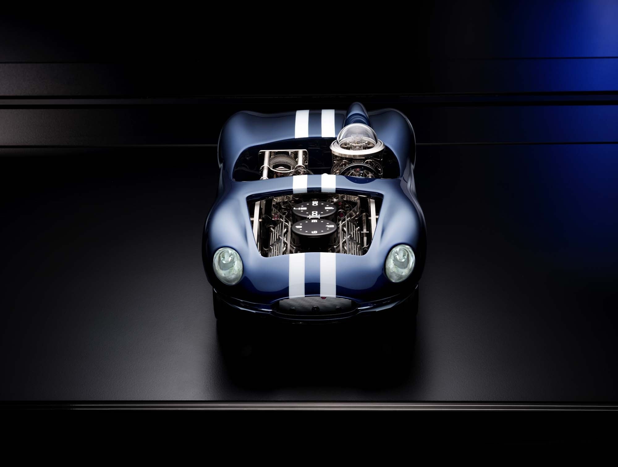 もう1つのムーブメントは、エンジンの動力に使用されます。ダッシュボードのキーを回すとエンジンが始動し、V8エンジンのピストンが上下します。このしくみは、時刻の動きとは完全に独立しています。