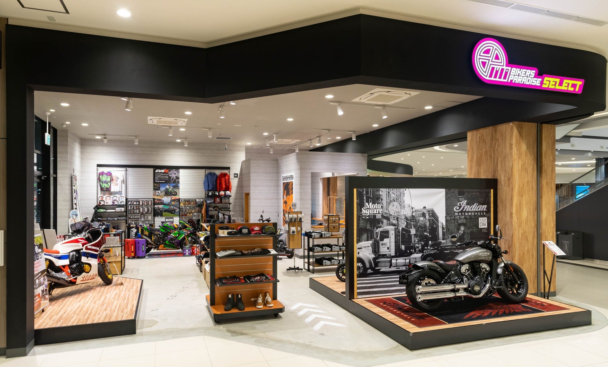 バイカーズパラダイスは、クルマによるアクセスの多いイオンモール豊川店に於いて、これまでもキャラクターやタレント、漫画家などとのコラボレーションを行い、モーターサイクル文化との接点を作ってまいりましたが、この度、いよいよ本格的にモーターサイクルに乗れる機会も提供することになりました。