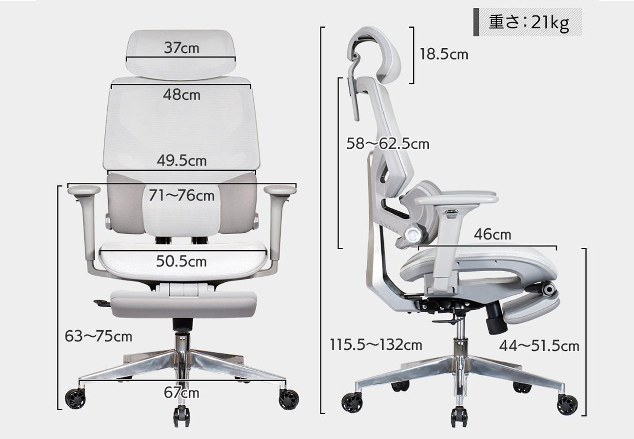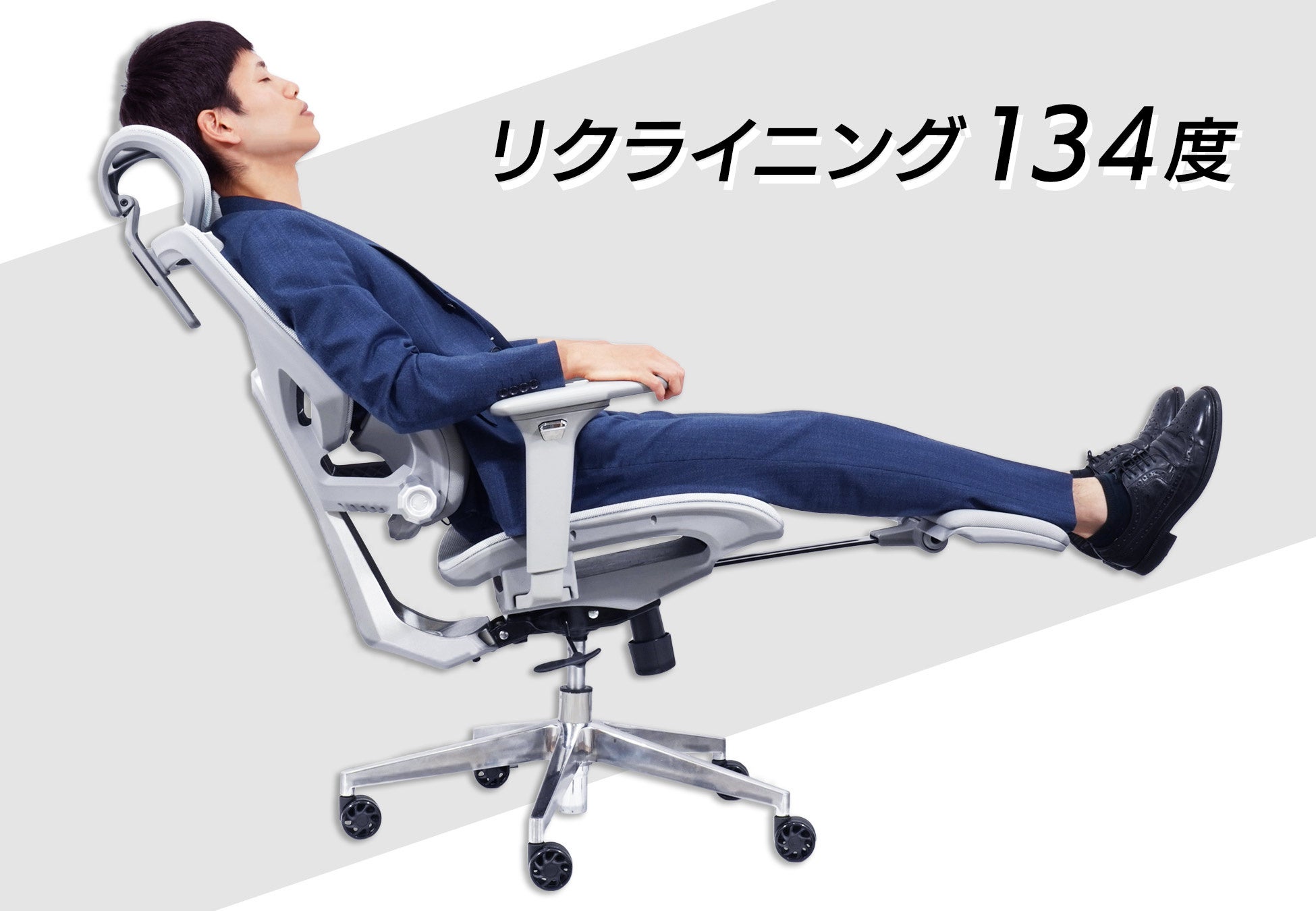 リクライニング最大134度、収納型フットレストを搭載しており、仕事疲れに足を延ばして仮眠いただけます。
