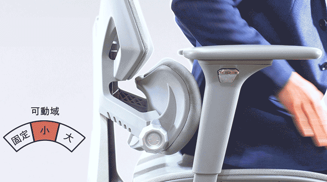 ①可動域 大:ランバーサポートの可動域が大きくなり、腰の動作に合わせて可動します。