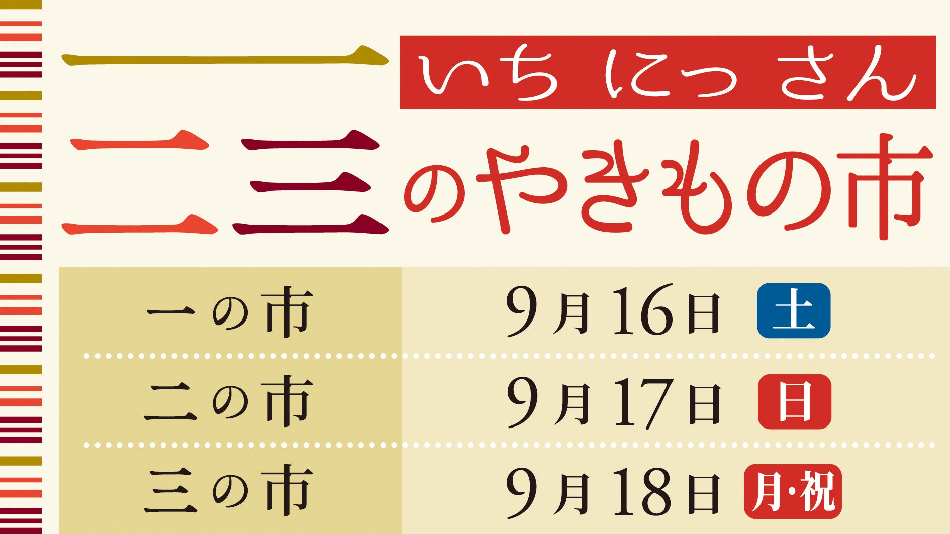 9月のイベント:「一二三のやきもの市」 9月16日、17日、18日開催