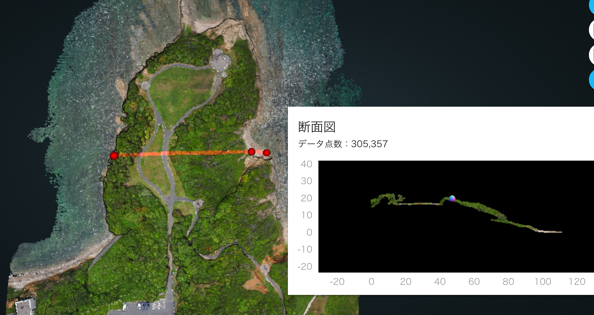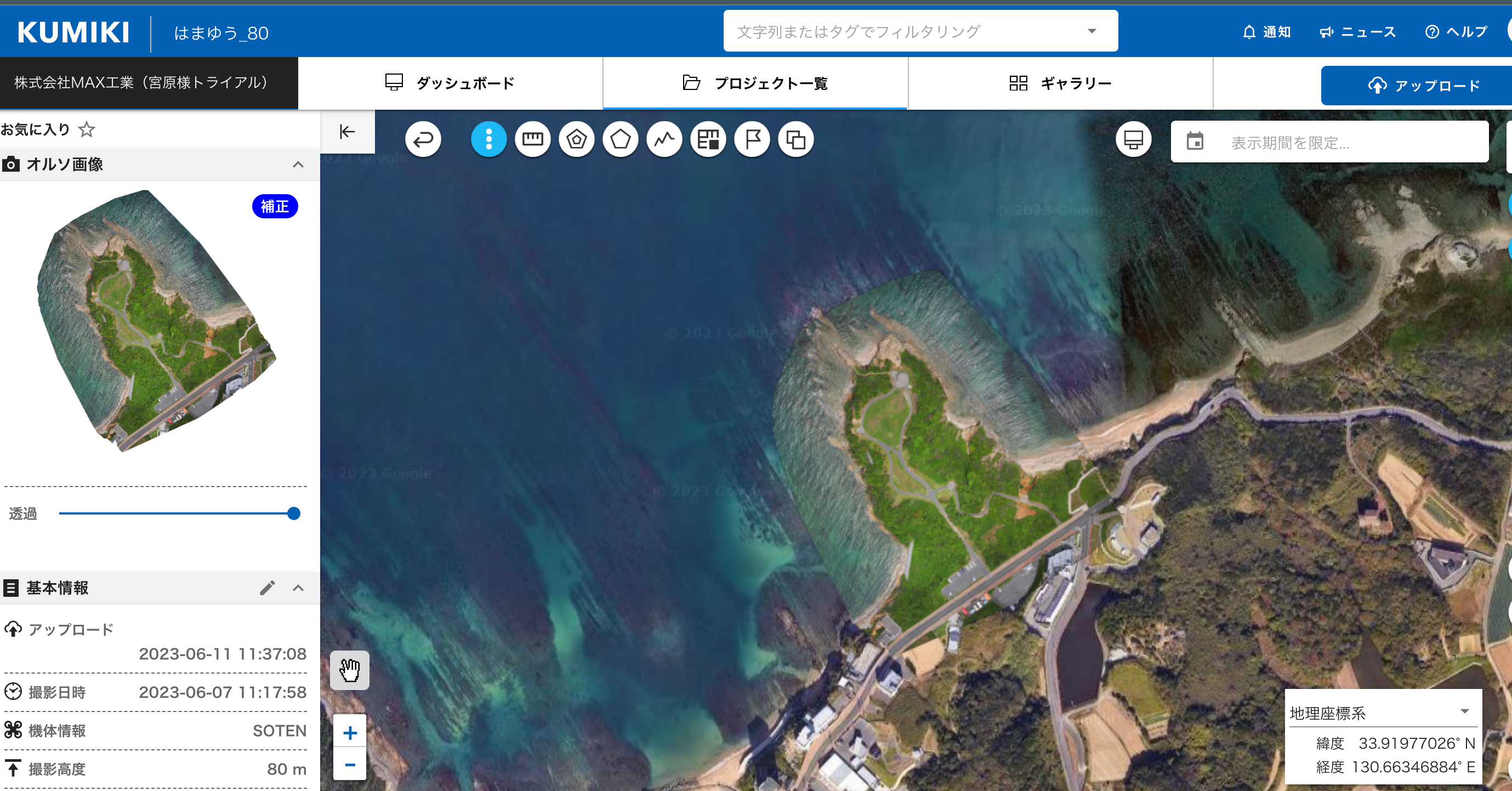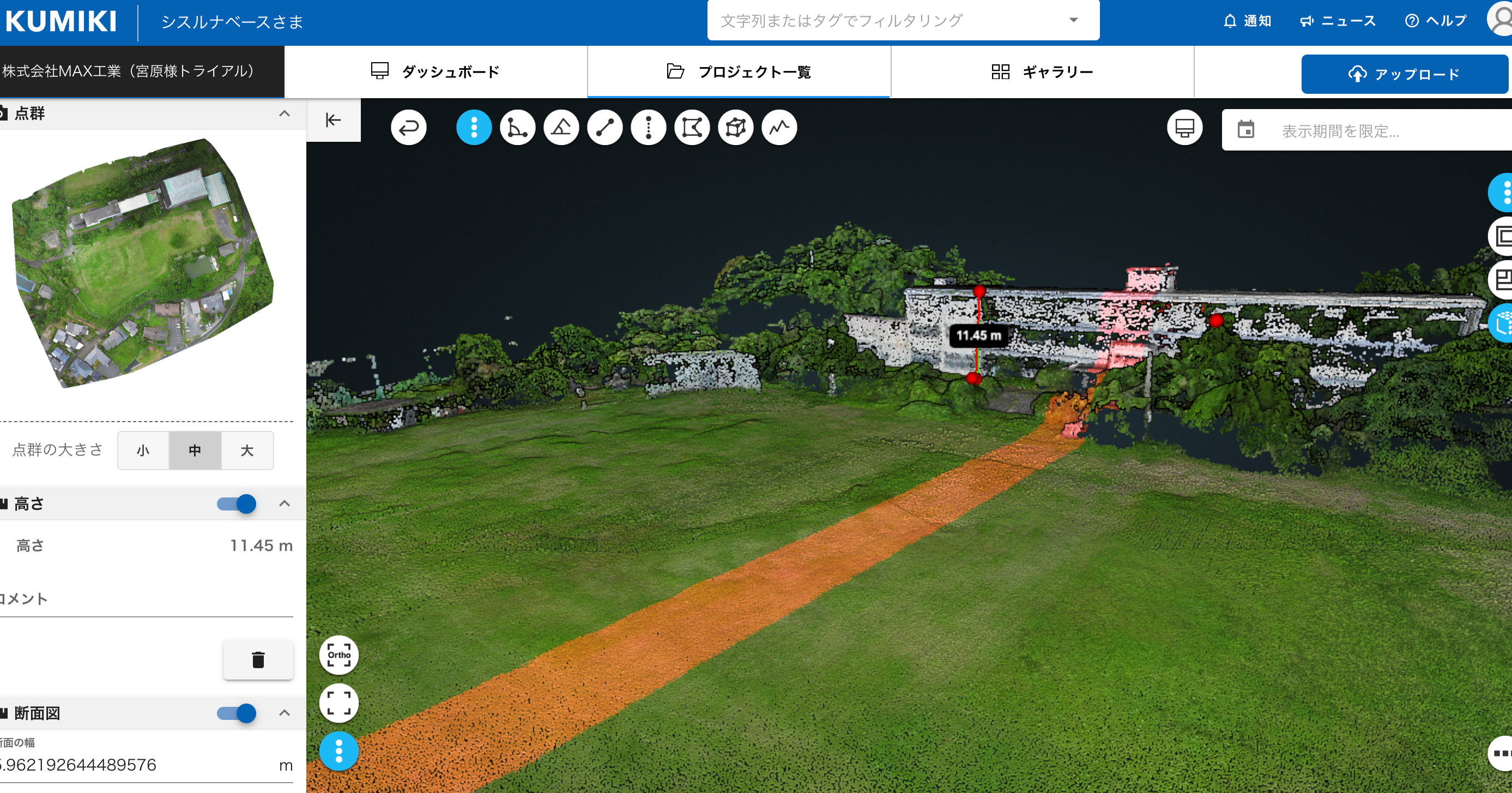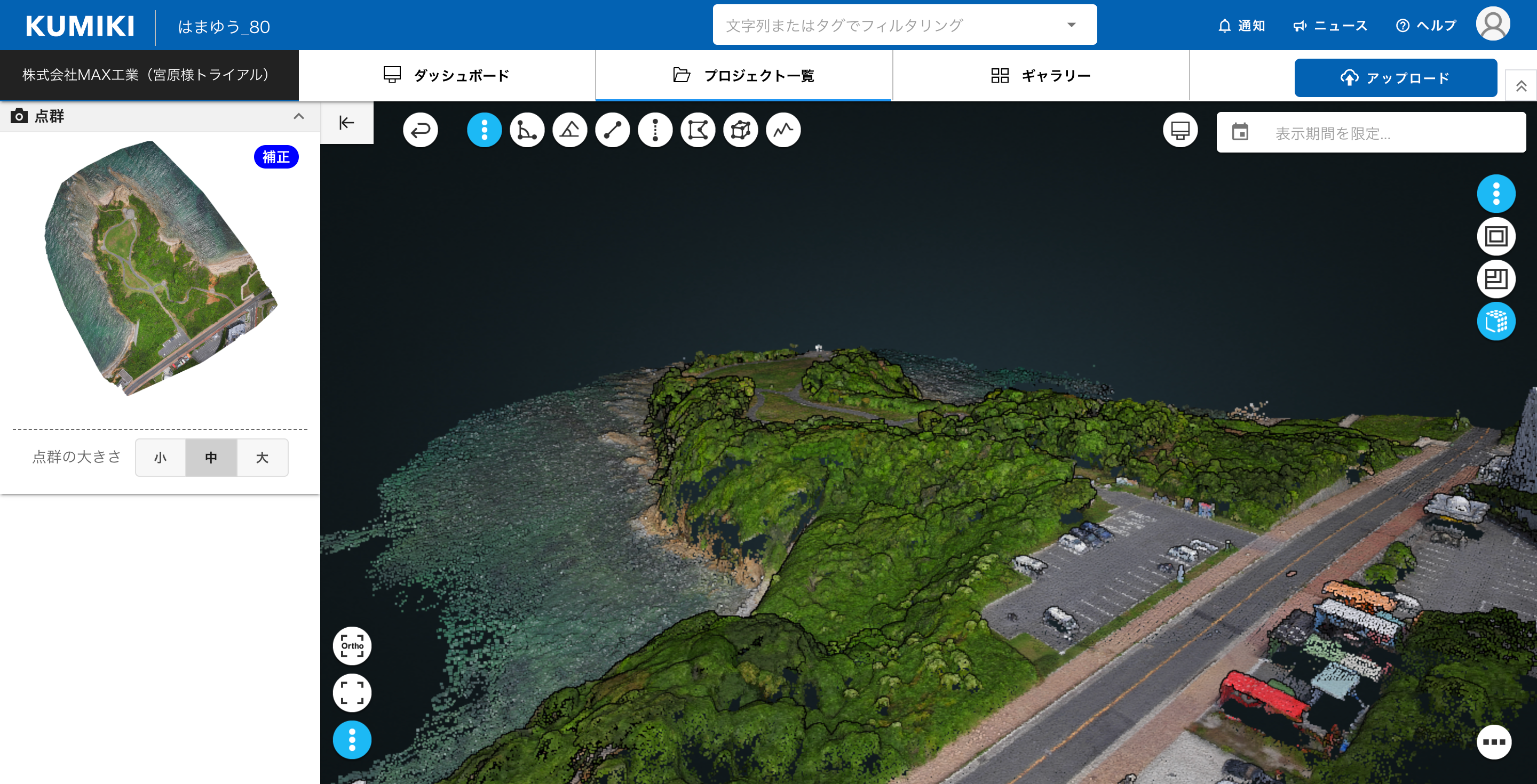また測量時に使用してる国産のSfMソフトである『KUMIKI(くみき)』のデモ画面も展示致します。