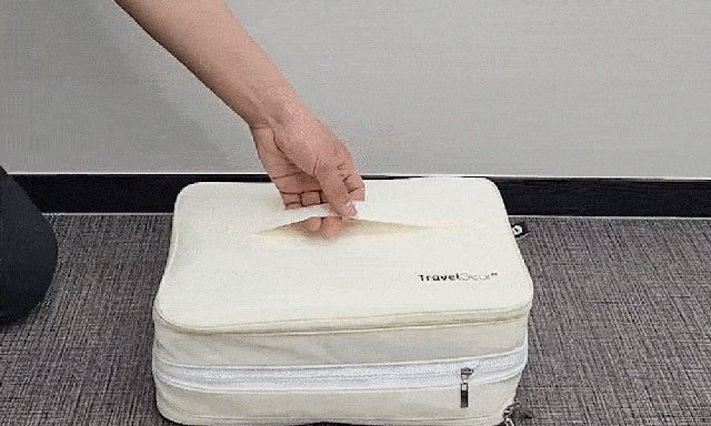 大量の荷物が瞬時にコンパクトに。旅行や出張に大活躍の圧縮ポーチ「トラベルギア」只今Makuakeにて日本初公開中!