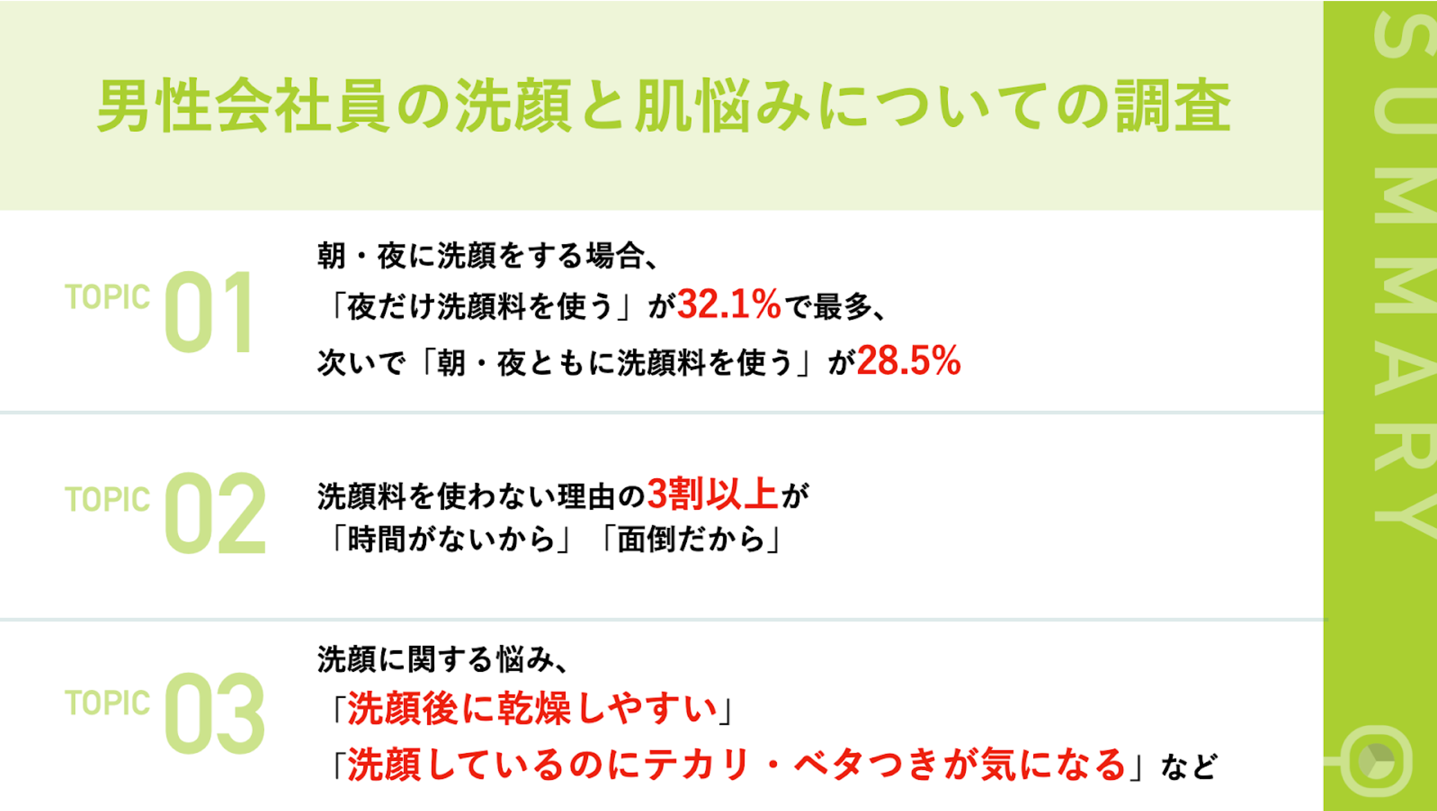 調査概要:男性会社員の洗顔と肌悩みについての調査