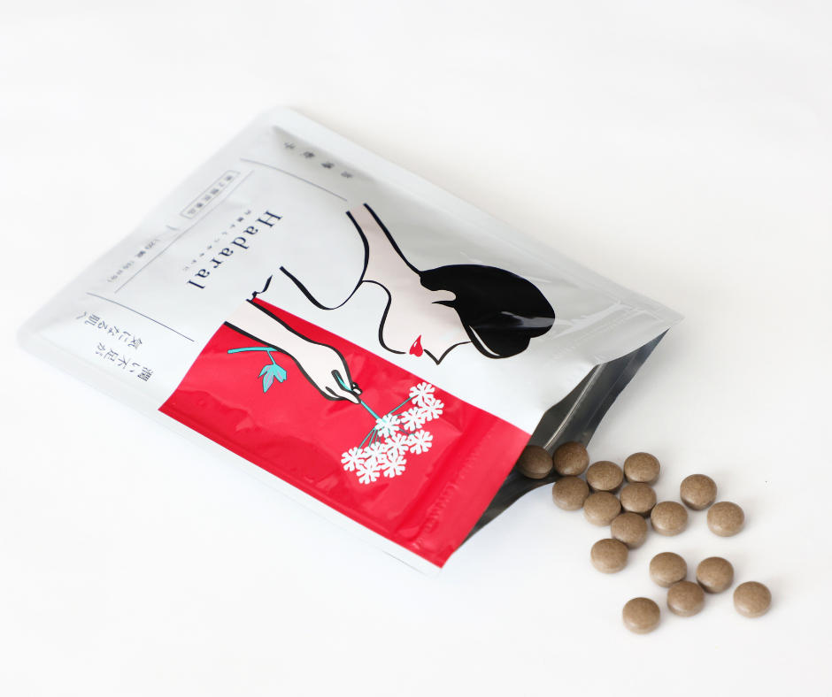 「Hadaral 当帰飲子錠」は外出時に持ち運びやすいパウチを採用し、飲みやすさにも徹底的にこだわり、コーティング錠として開発しました。大峰堂の漢方Storeが目指すのは、エンドユーザーの幸せに他なりません。持ち歩いて服用して、嬉しくなるような新しい漢方製品を開発しています。心も身体もよりよく巡り、健康になってほしいという思いを込めた製品です。