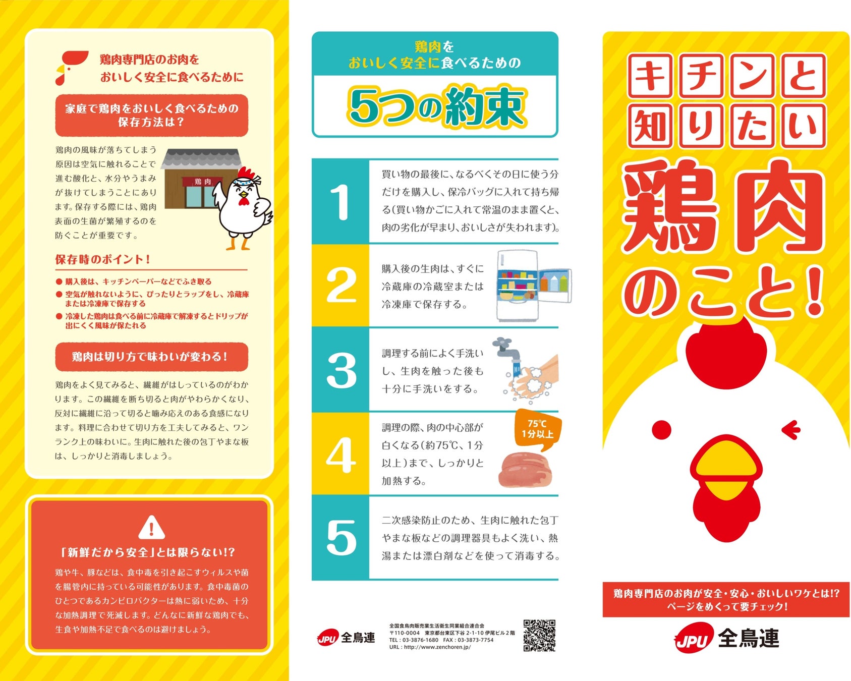 全国食鳥肉販売業生活衛生同業組合連合会(東京都台東区/以下、全鳥連)は、「安全・安心・おいしい鶏肉」の啓発と食鳥肉販売業の魅力の発信を目的として、啓発事業に取り組んでいます。