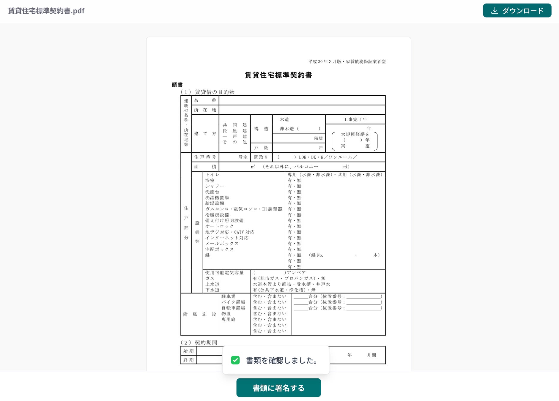 借り上げ社宅の入居手続きをセキュアに、ワンクリックで簡単に電子契約が可能