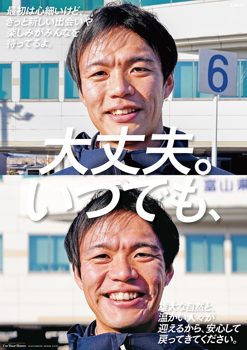 富山県(知事:新田 八朗)は、昨年から始まった県外に進学・就職する若者を応援する「I’m Your Home.」の第2弾、「旅立つ君へのエール 〜大丈夫。いつでも、富山はここにいる〜」のプロジェクトムービーを3月19日より公開します。