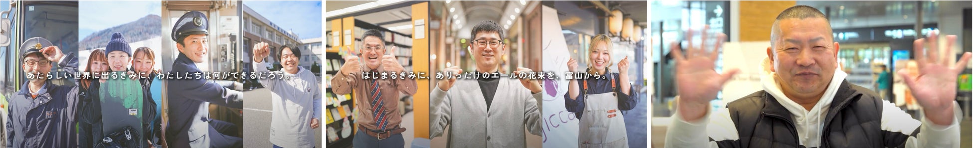 富山県は今年中に人口が100万人を下回る可能性があり、 若年層の転出超過が大きな課題の一つとなっていますが、前途ある若者を県内にとどめようとするのではなく、夢を後押しすることで、「富山県との心理的なつながり」を感じてほしいと考え、本プロジェクト及びプロジェクトムービーを企画しました。