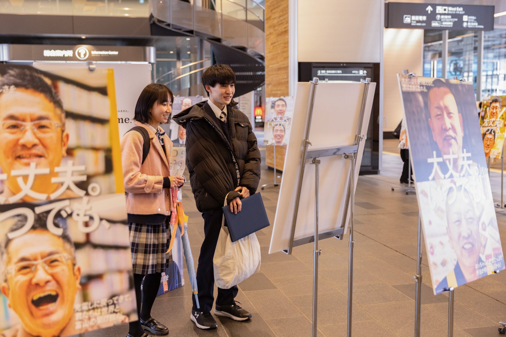 2. 動画と合わせて撮影したストリートスナップに応援メッセージを添え、3月1日(金)にJR富山駅構内にて1日限定で『街角から“いってらっしゃい”スナップ』ポスター展を実施。