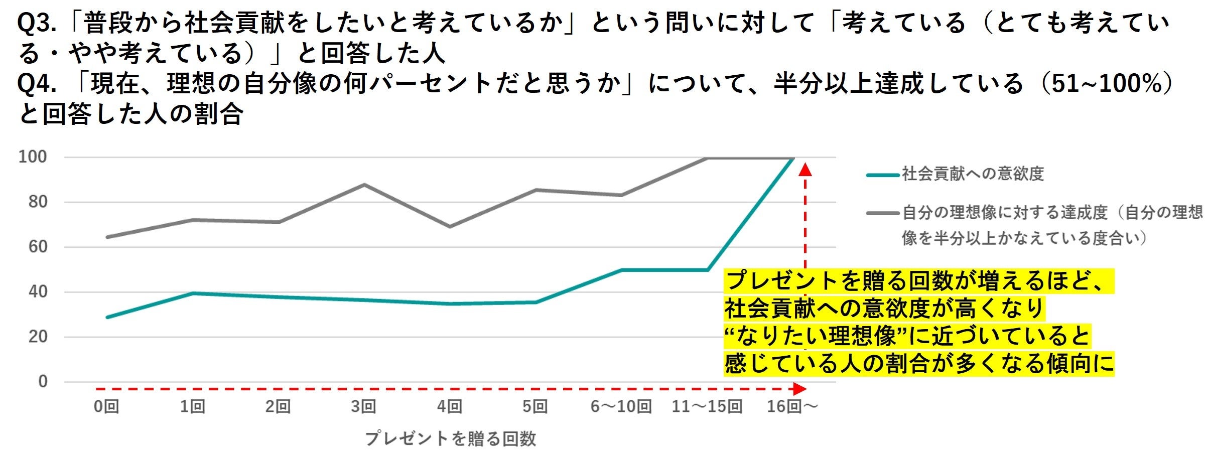 ◆ギフトを贈る習慣のある人は、社会貢献意欲があり、今の自分に満足している傾向がある。