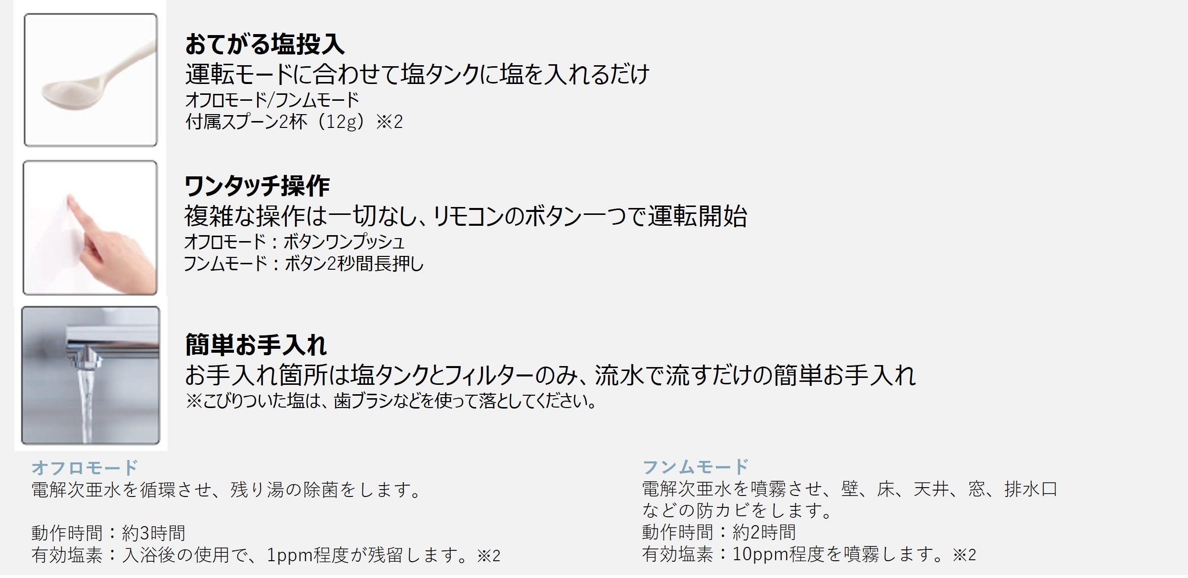 ※3:本品はカビ取り機能はありません。カビを生えにくくする製品です。