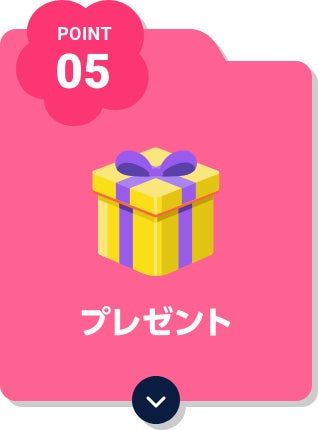サイトを利用して獲得するコインを貯めて「プレゼント」に応募することができます。最新のおもちゃや大人気アイテムなど、プレゼントの内容は毎月更新、コインがあれば何度でも応募可能です。