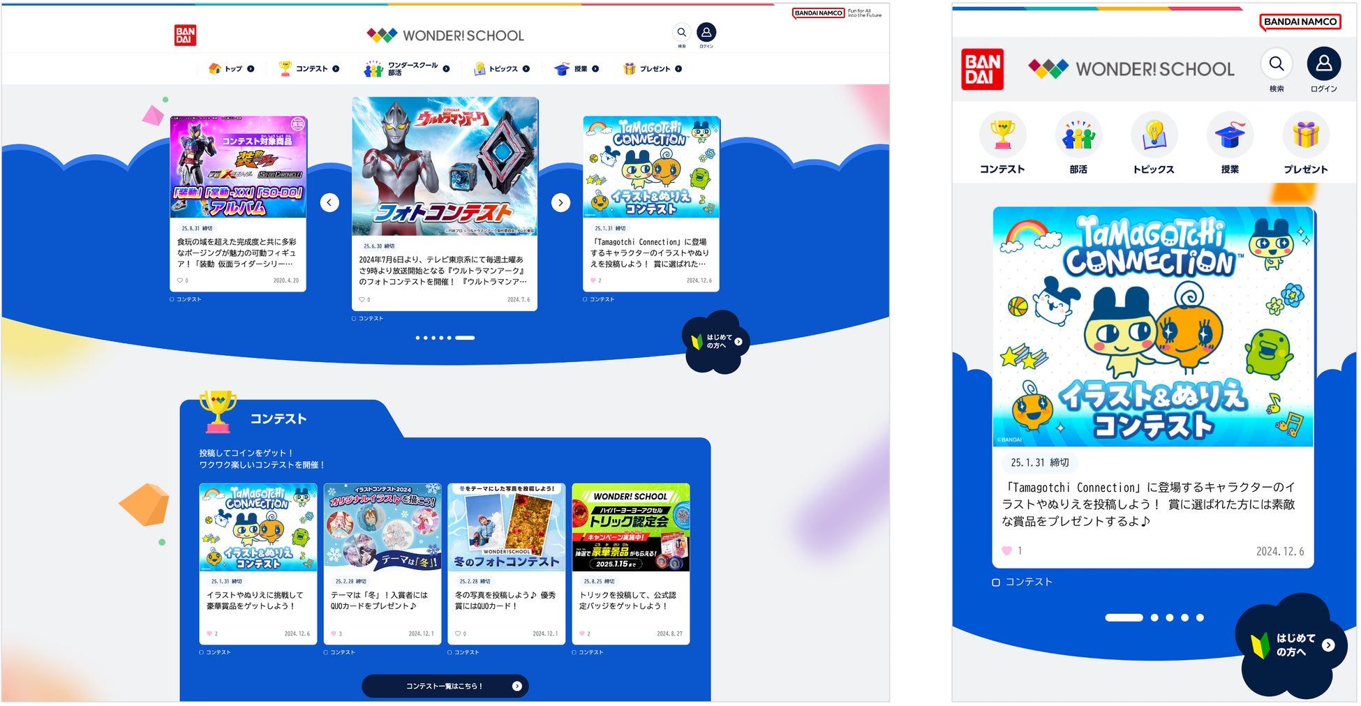 株式会社バンダイ メディア部(本社:東京都台東区)は、2015年 から「子どもたちの夢中を応援」をコンセプトに、参加型投稿サイト「ワンダースクール」を運営しています。「ワンダースクール」は、2024年12月12日(木)サイト利用者のさらなる利便性向上を目的に全面リニューアルいたしました。