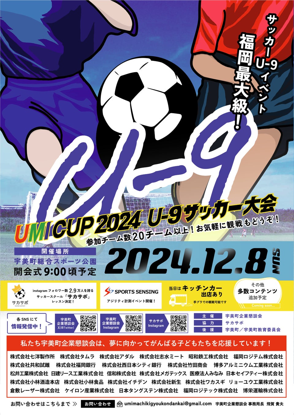 その地域活性化の一環して、⼦育て世代へ向けた参加無償の特別イベント第2回 「UMI CUP2024 U-9 サッカー⼤会」を2024年12⽉8⽇(⽇)に開催いたします。