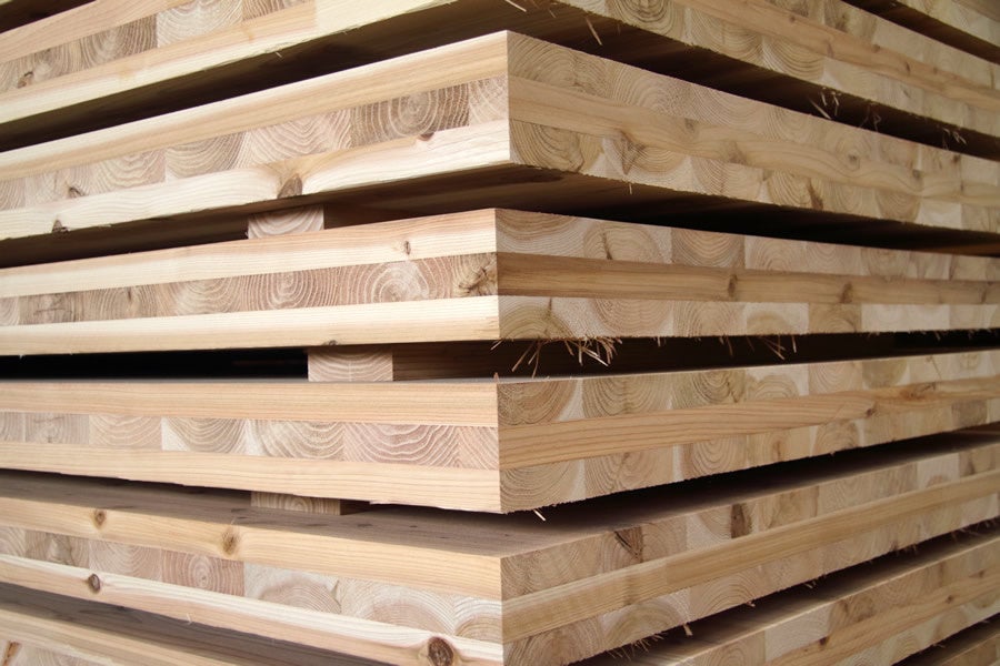 木の板 を繊維方向が直交するように積層接着した木質系材料です。