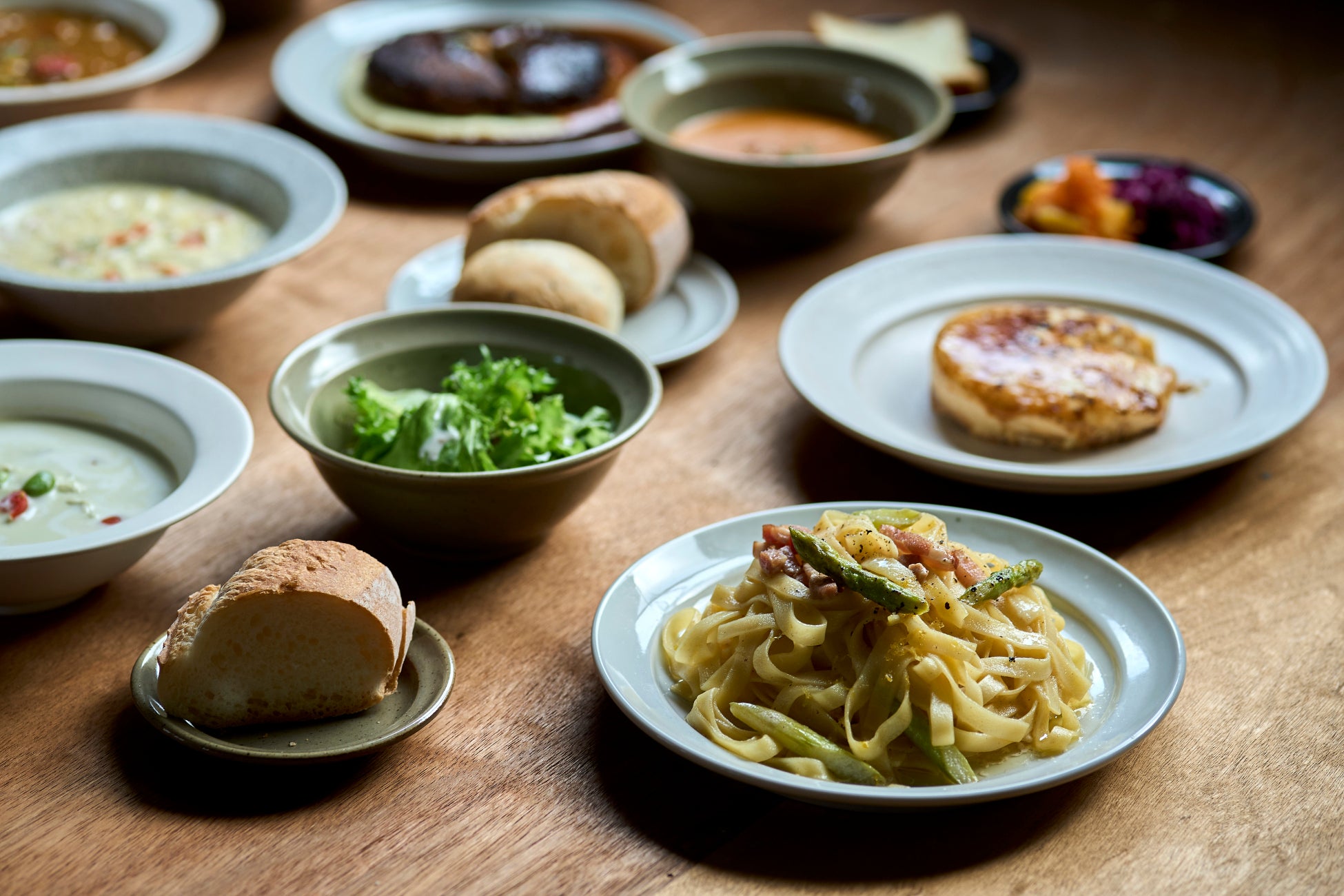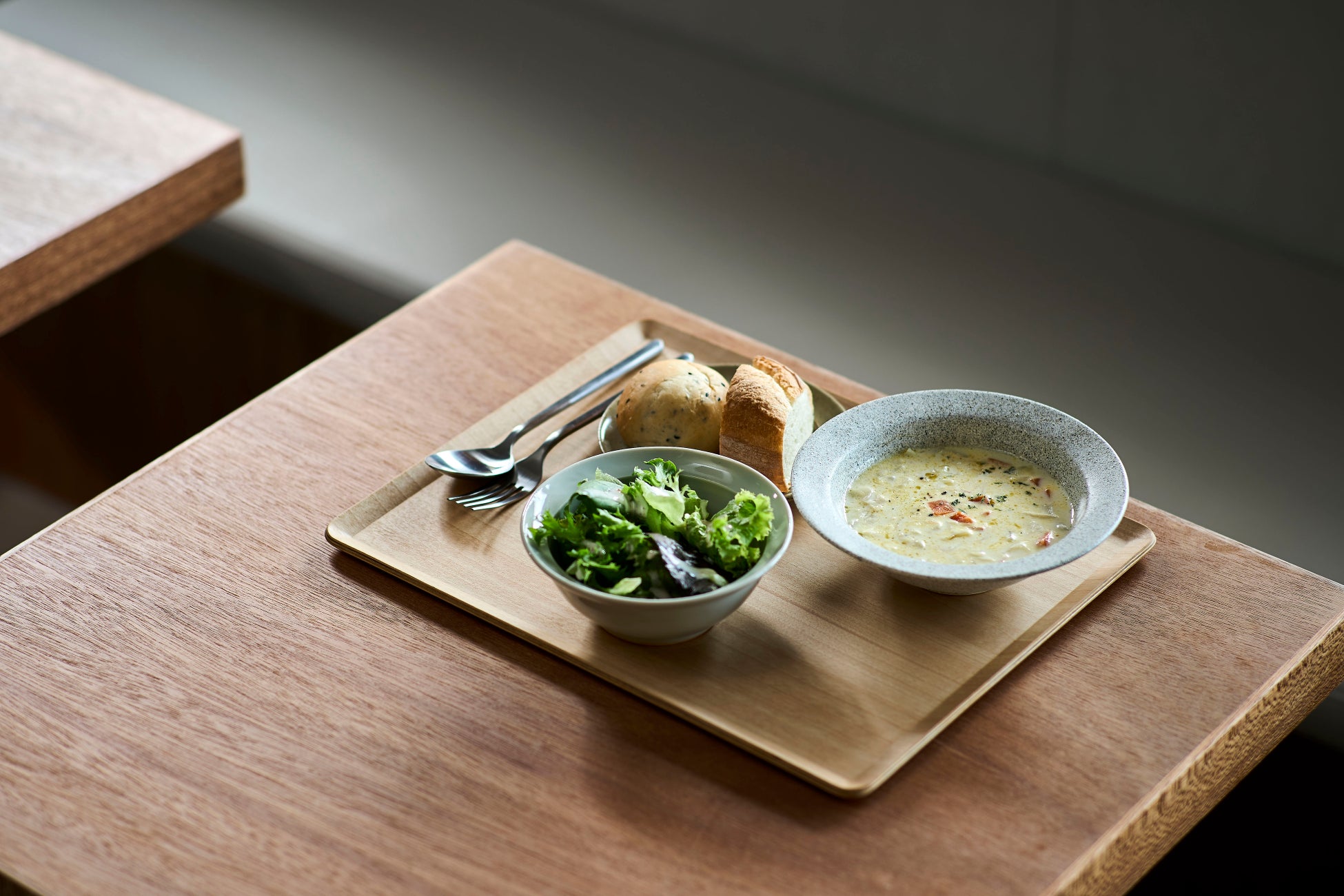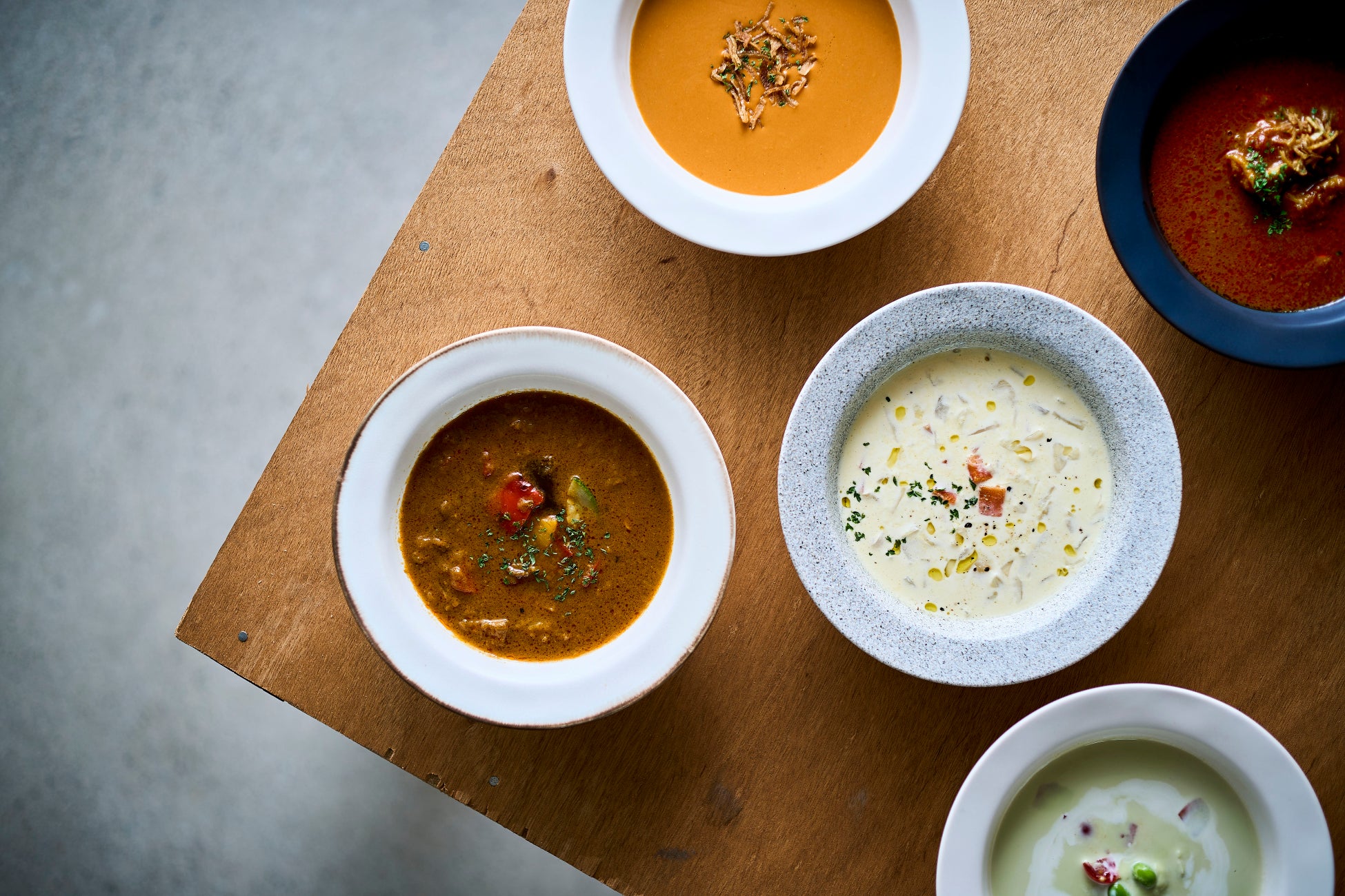 料理は全般、NHKや東海テレビなど、各メディアで活躍する料理家中辻健太が監修。日常の食事であり、栄養摂取に優れるスープは、世界各地、それぞれの食材・食文化で育まれ親しまれてきた。スロープでは季節によってスープを変えながら、常時5種を提供。旬の食材や、米沢牛をはじめとする地産の食材を活用する。