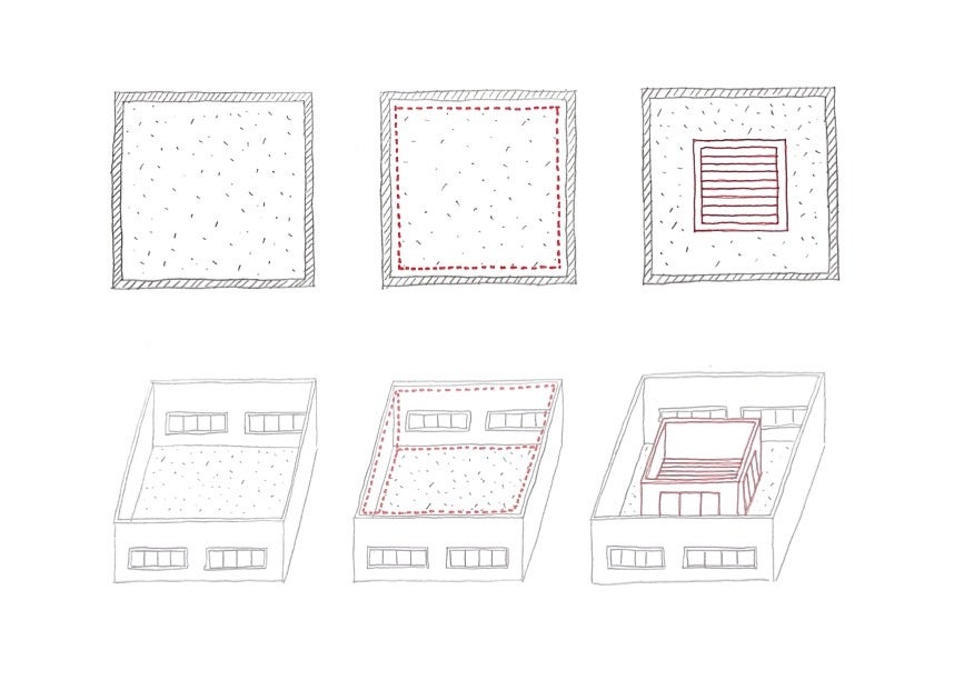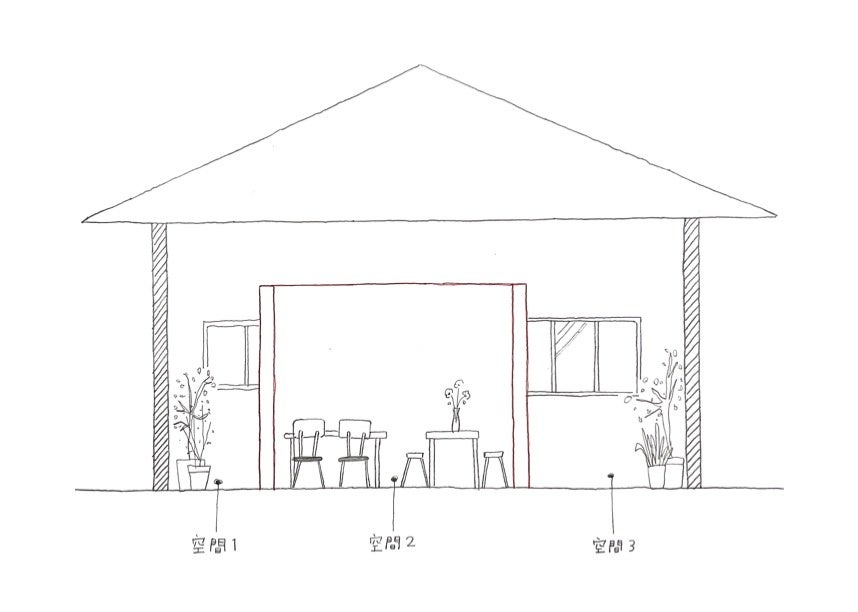 米沢市は11月〜3月に雪が降り、多い時には最深100cm以上積雪する地域。断熱性が求められ、一般に風除室や二重窓で寒さを緩和する。こうした手法をスロープでは使わず、建物の中心に飲食空間を置き、それを土間スペースで囲うという入れ子構造で断熱性を持たせた。二つの空間に仕切ったことで、店舗の用途も単純な飲食機能だけでなく、物販やイベント開催など可能で、ペットとも過ごすことのできる多様な使い方の店舗となった。