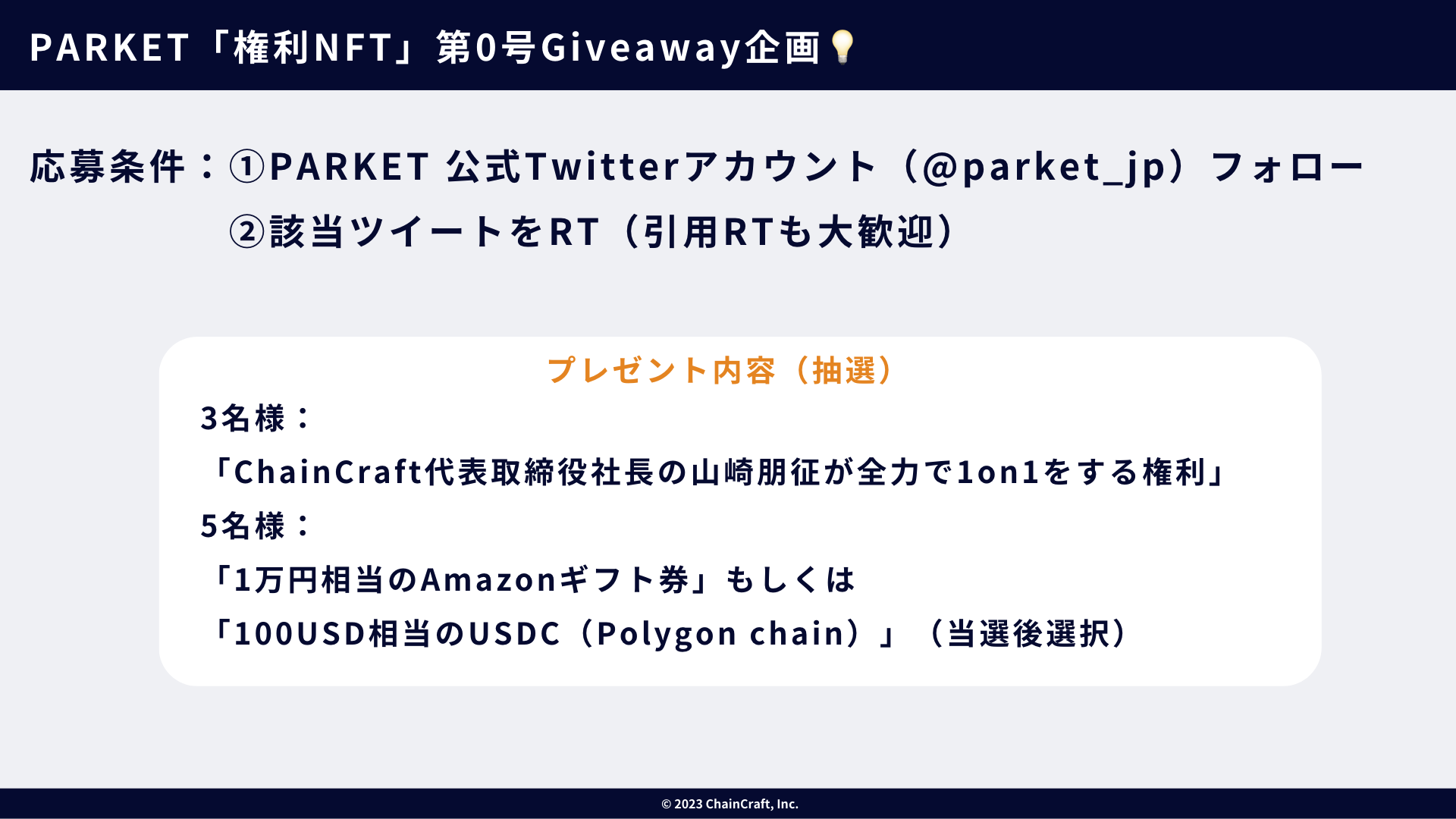 ■ キャンペーン②PARKET"権利NFT"第0号Giveaway