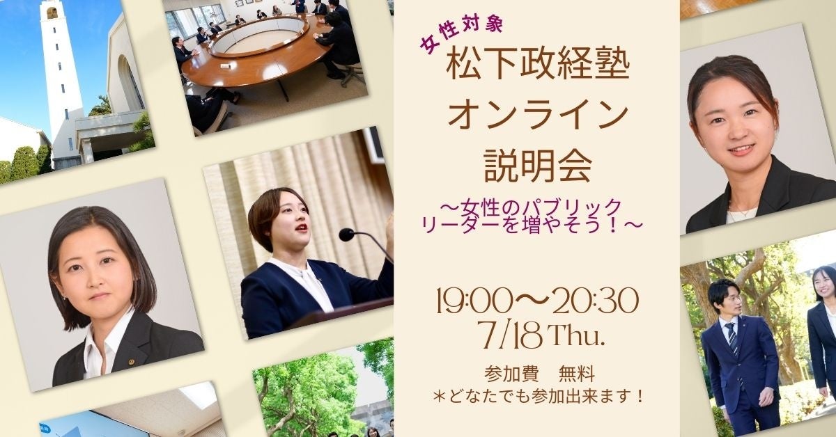 松下政経塾 2025年4月新入塾生募集 女性対象オンライン説明会開催 【2024年7月18日(木)19:00~20:30】