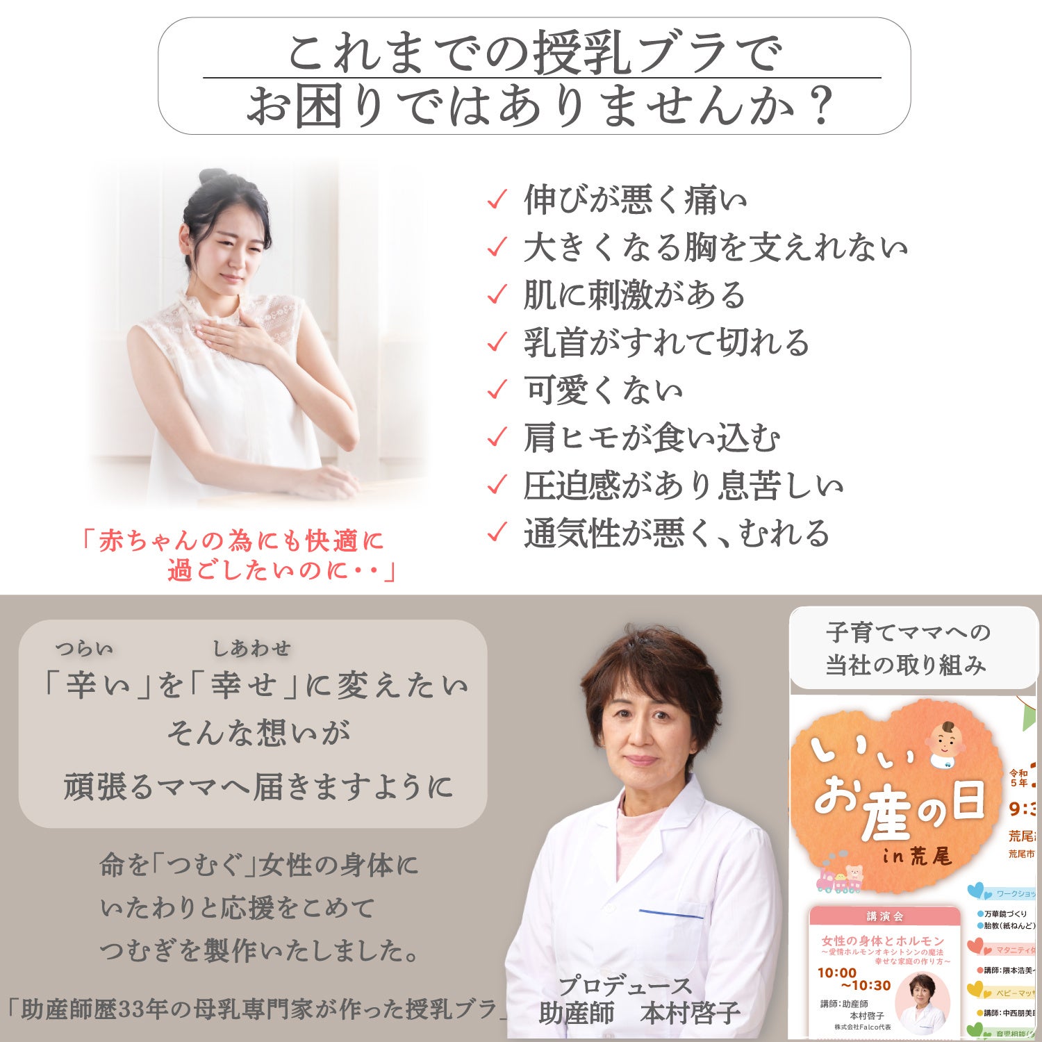 特に、助産師歴35年の代表・本村啓子が製作した授乳ブラ