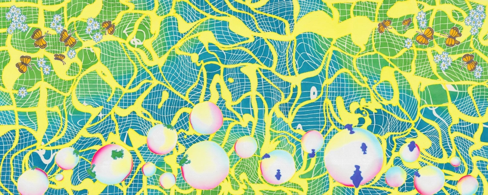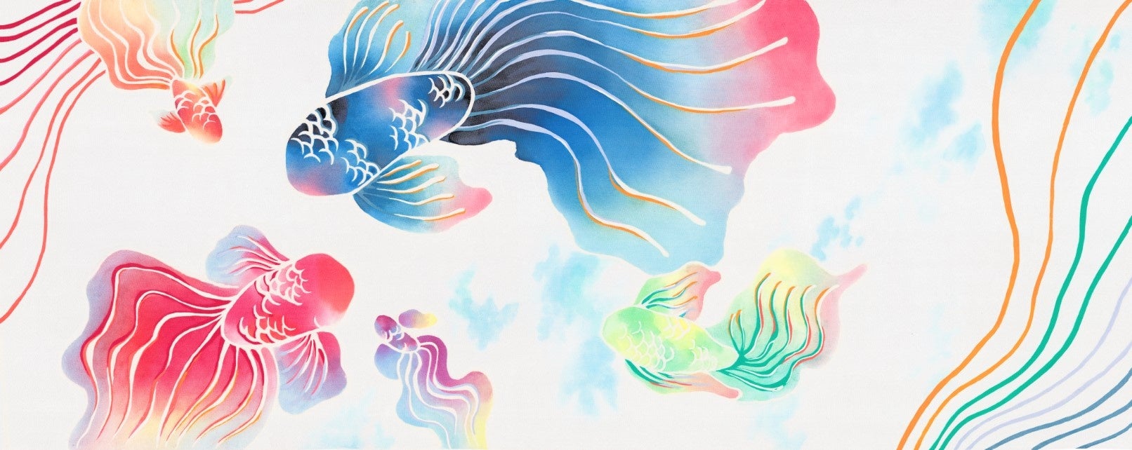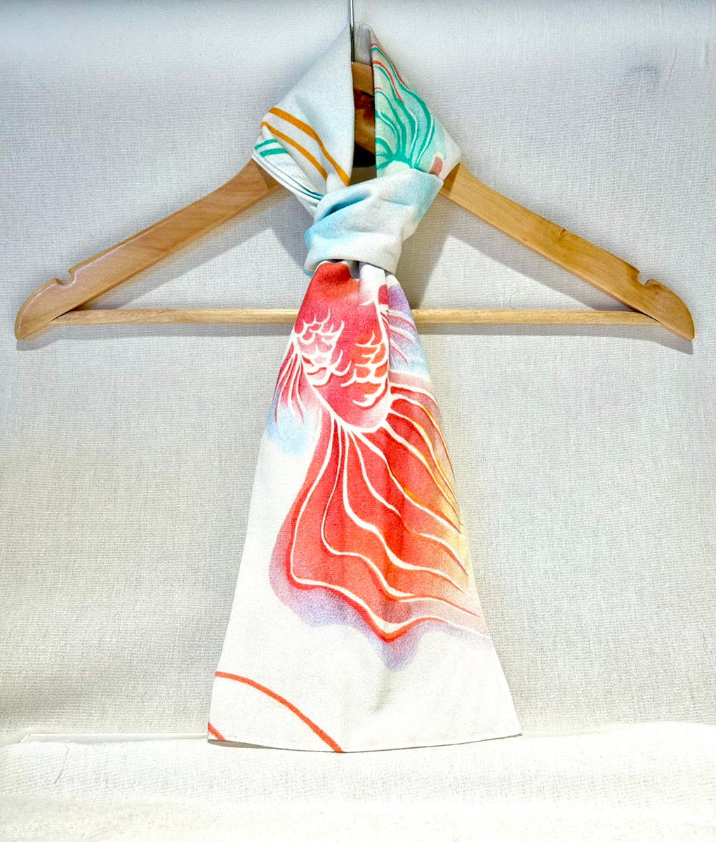 テーマ:アップサイクルによる豊かな環境により美しくなった生き物、今回では海洋汚染の改善に着目したイメージしました。友禅染めならではの色と糸目の表現を、美しい未来のイメージや、紙糸とリンクさせました。
