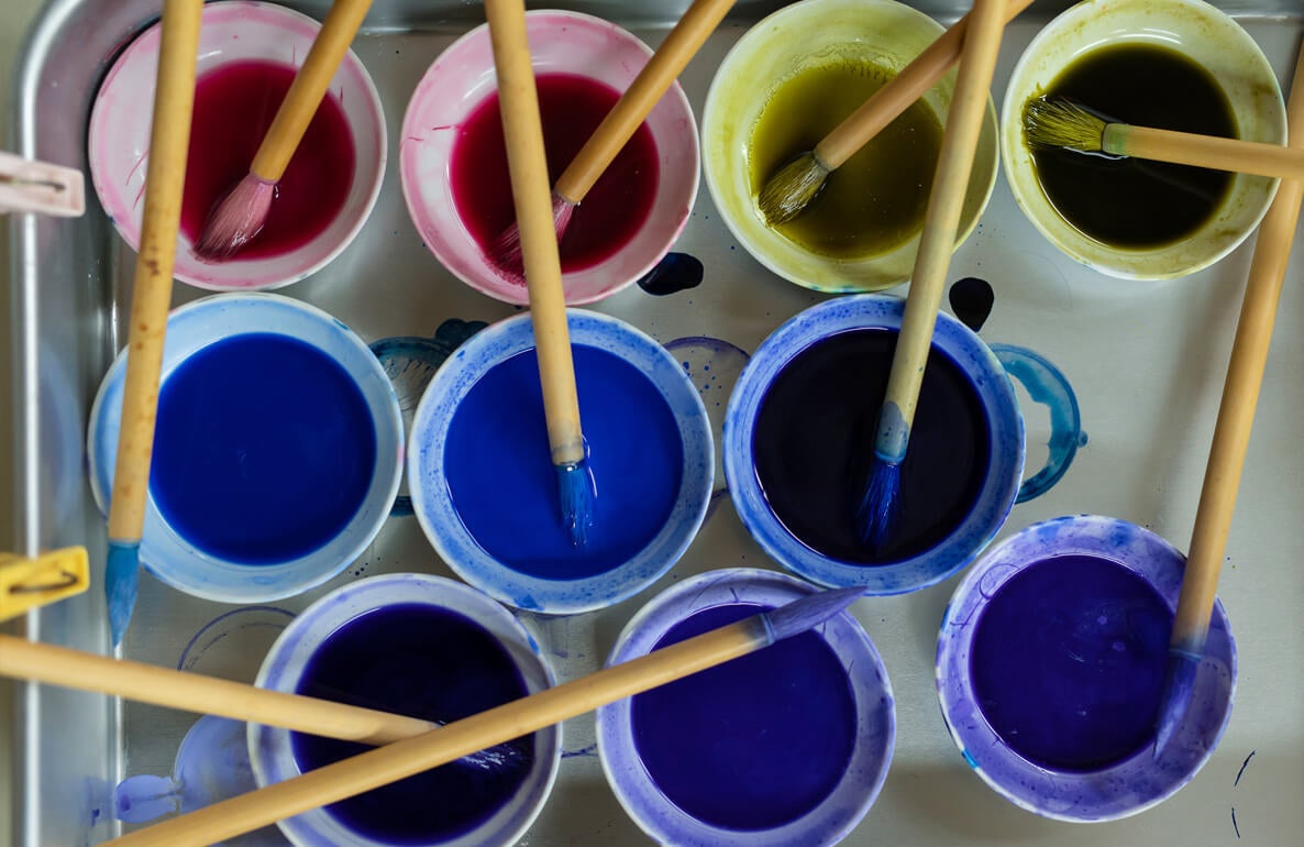 <制作過程の様子(毎田染画工芸にて)>