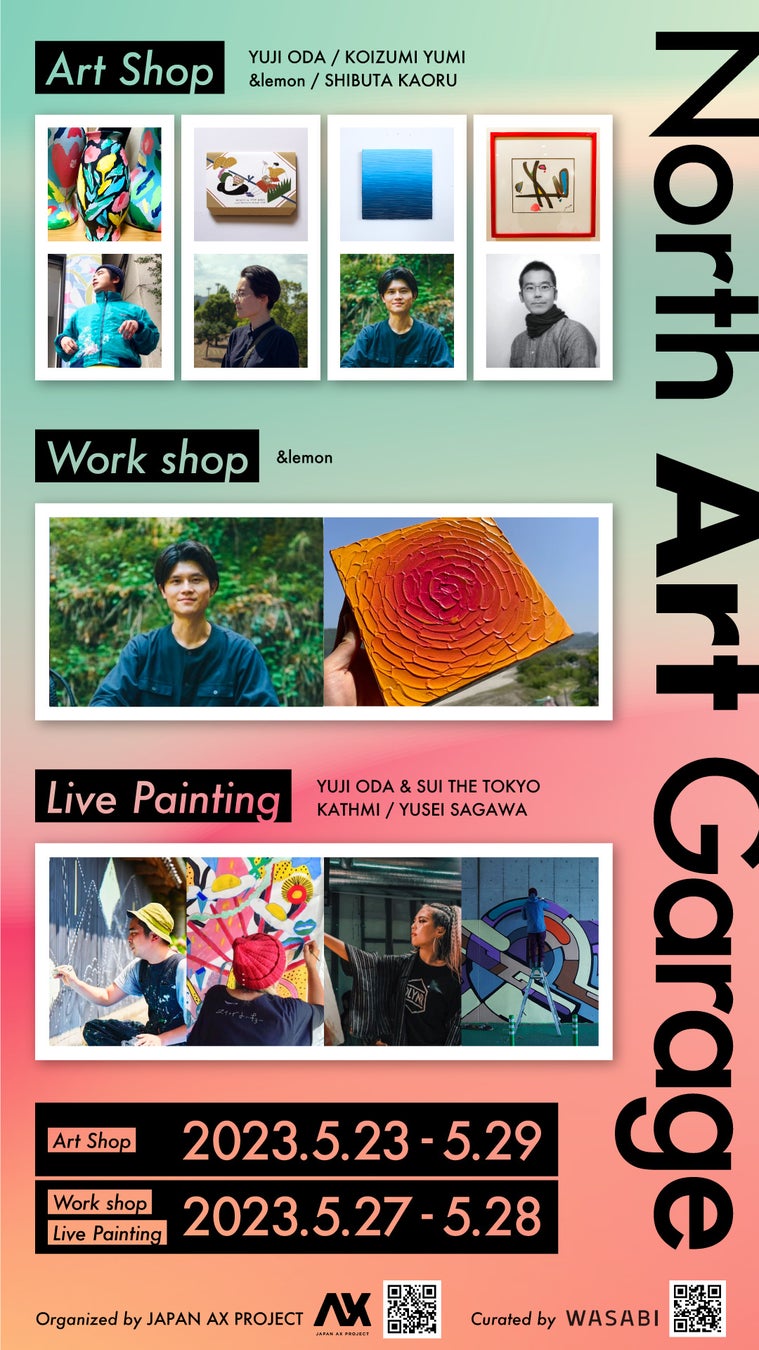 JAPAN AX PROJECTでは、ミューラル(壁画)アートを通じてアートを多くの人に「体感」「体験」してほしいと考えています。North Art Garageは、絵画やアート作品を購入するだけではなく、北海道ではなかなか観ることのできないミューラルアーティストによるライブペイントや、アートを気軽に体験できるアートワークショップなどを実施します。