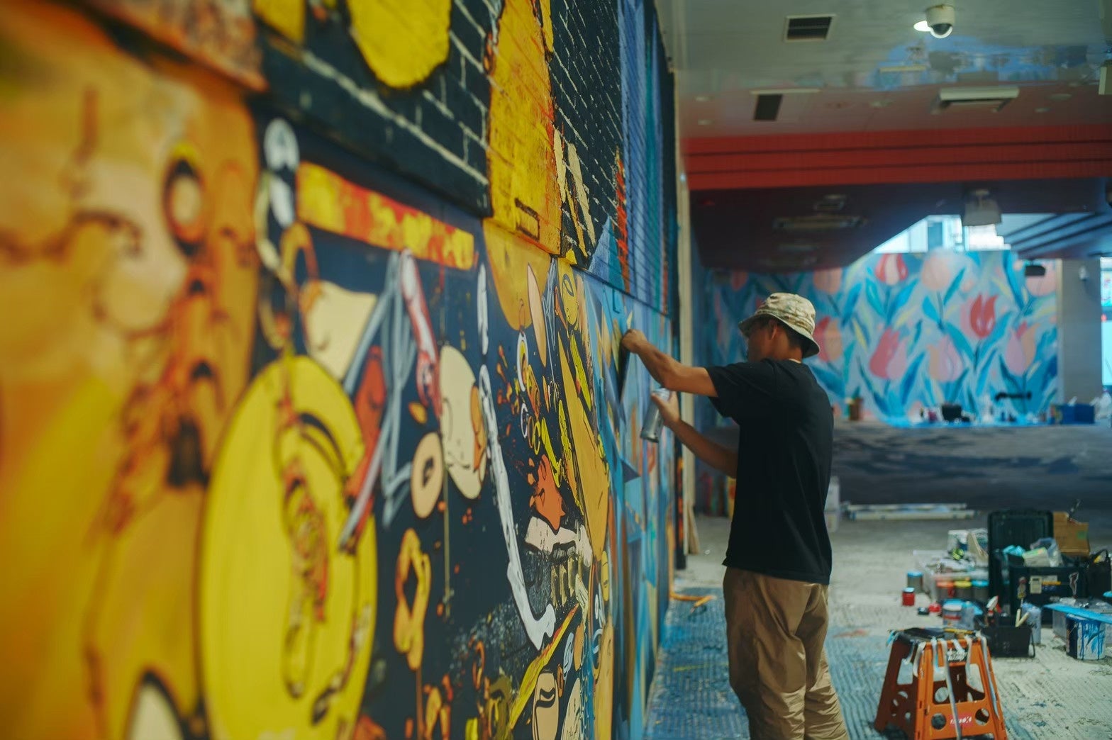 こういった無機質な“壁”にミューラルアートを取り入れていくことで、都市開発のプロセスをワクワクするような“イベント”に変換していければ面白いと思っています。