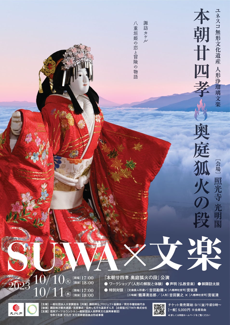 【長野県:SUWA×文楽】聖地・諏訪で文楽の人気演目『本朝廿四孝 奥庭狐火の段』、10月公演決定!宿泊ツアーも実施