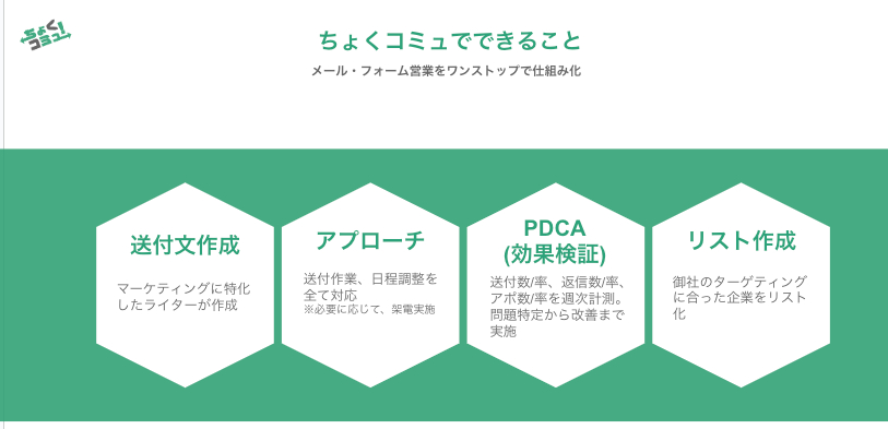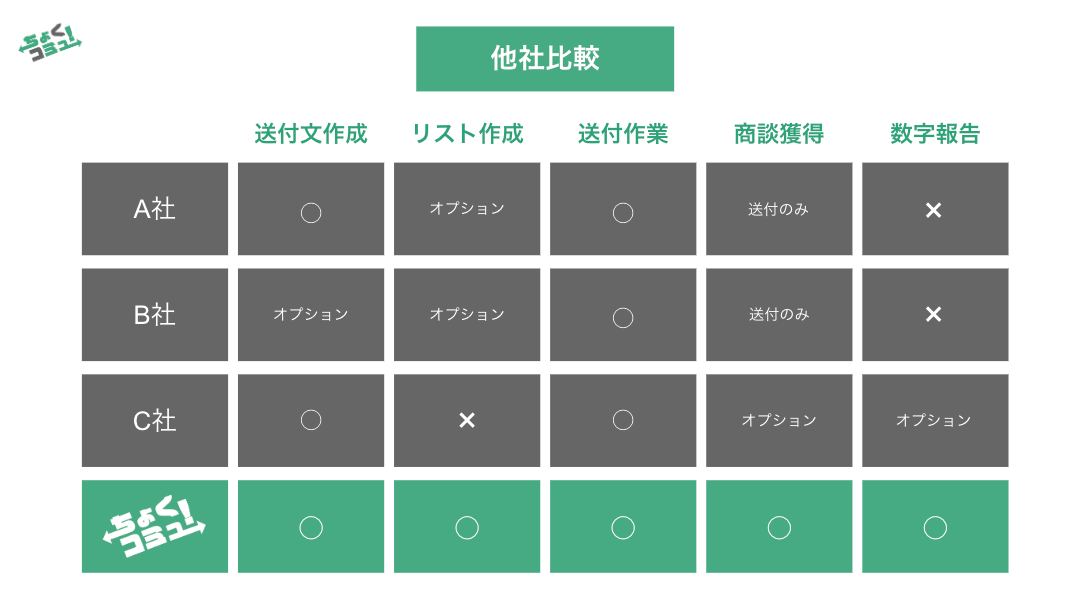 結果にコミットした営業支援サービスをお探しの方はぜひ「ちょくコミュ!」をご検討ください。