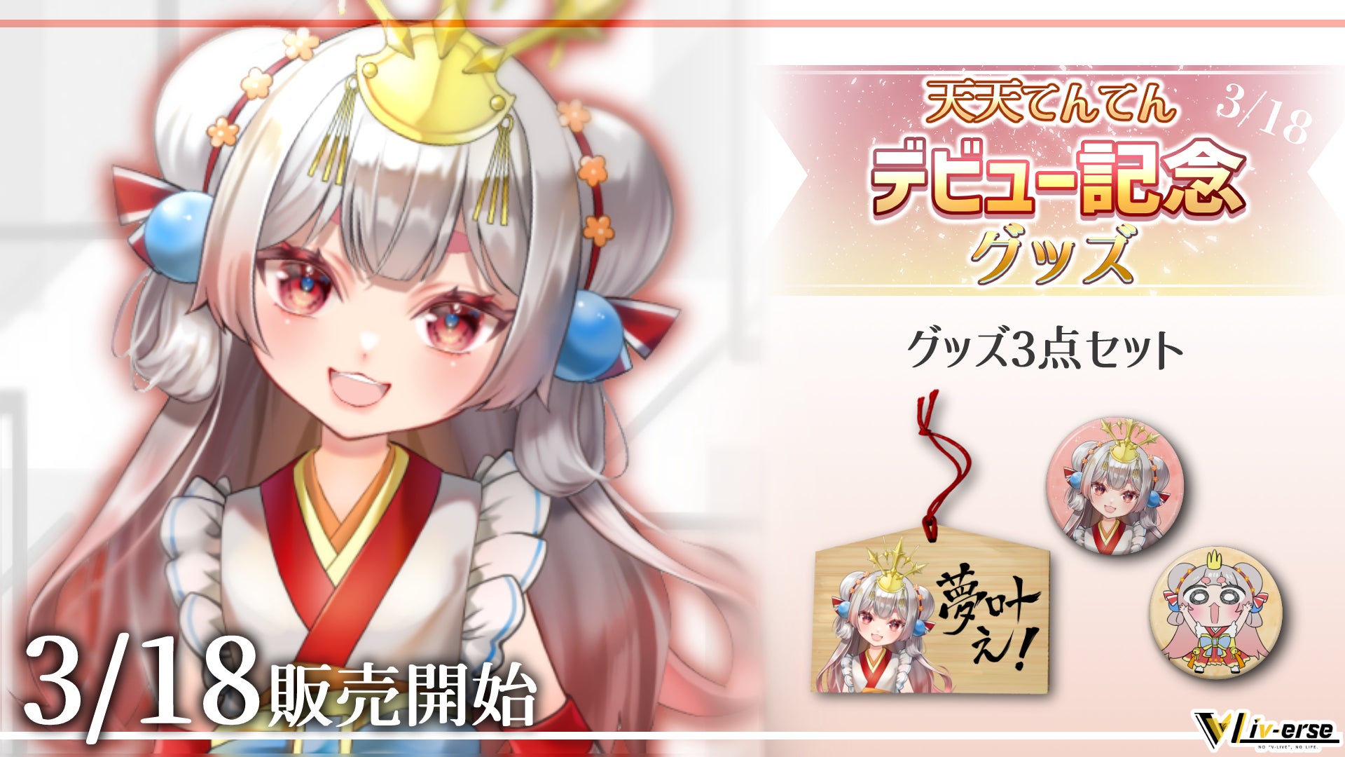 株式会社かなう(本社:東京都練馬区 代表取締役:上島 和也)が運営するVTube事務所「Liv-erse(ライヴァ―ス)」は、所属1期生「天天(あまそら)てんてん」のデビューを記念した「天天てんてんデビュー記念グッズ」を数量限定で販売開始しました。