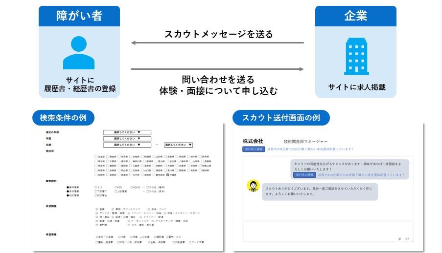 本サービスの最大の特徴は、企業が障害者の求職者を自らスカウトできる点にあります。