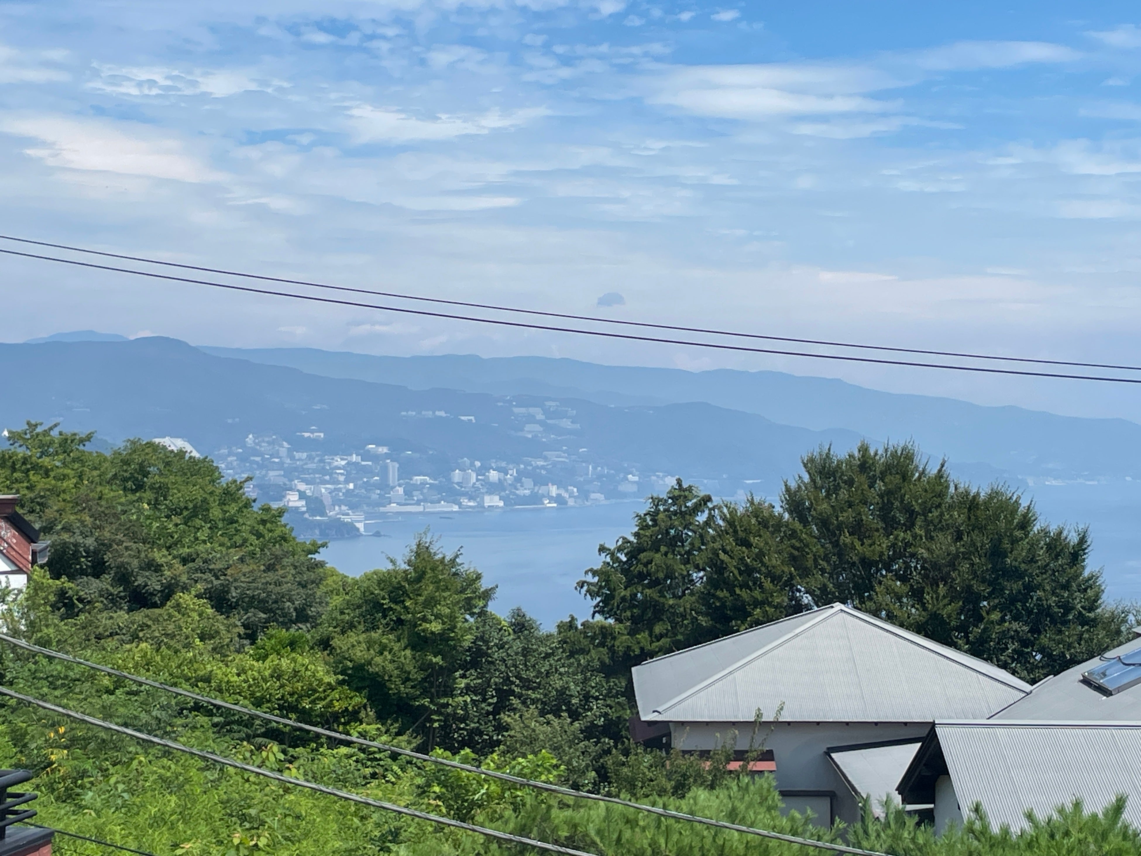 都心から最短36分(新幹線東京駅~)で熱海駅へそこから車で20分程の場所に位置する「熱海ルピナス」。露天風呂からは伊豆の山並みを望みます。