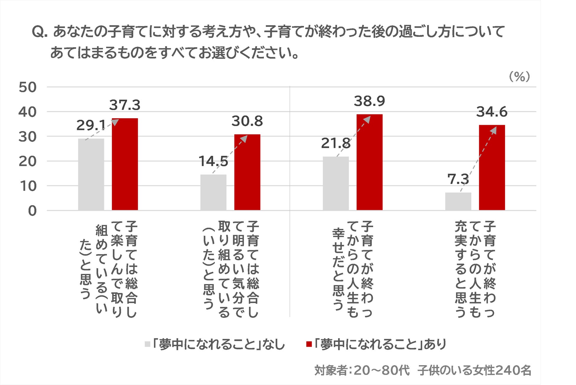 ―夢中になれることがある母親の方が、ない母親より約4.7倍高く「子育て後の人生も充実する」と考えている