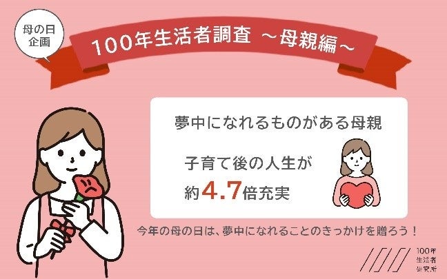 母の日を前に、【100年生活者調査~母親編~】を実施 夢中になれるものがある母親は、子育て後の人生が約4.7倍充実すると回答