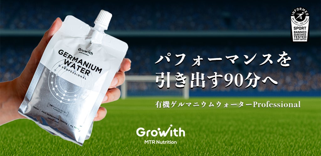 国内外のプロサッカー選手、トップアスリートのコンディショニングサポート、からパフォーマンスアップまでを実現可能としたコンディショニングメソッドMTR MethodⓇ(運営:セブンシーズ・アンド・パートナーズ株式会社(本社:東京都調布市/代表取締役CEO 續池 均 / KIN TSUZUIKE)が栄養サポート部門として展開する健康食品ブランド『Growith MTR nutrition』より、アンチ・ドーピング認証プログラム(インフォームドスポーツ:英国LGC社)を取得した新製品『有機ゲルマニウムウォーターProfessional300ml』を11月1日より発売開始。