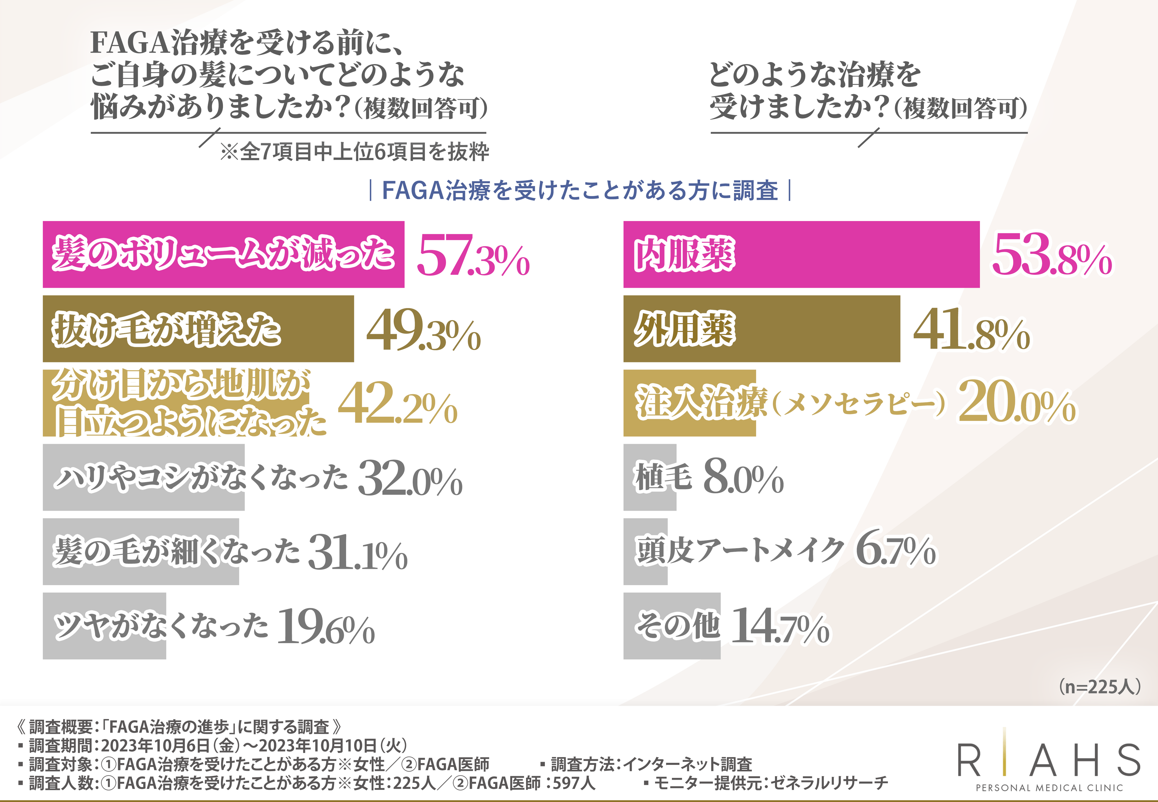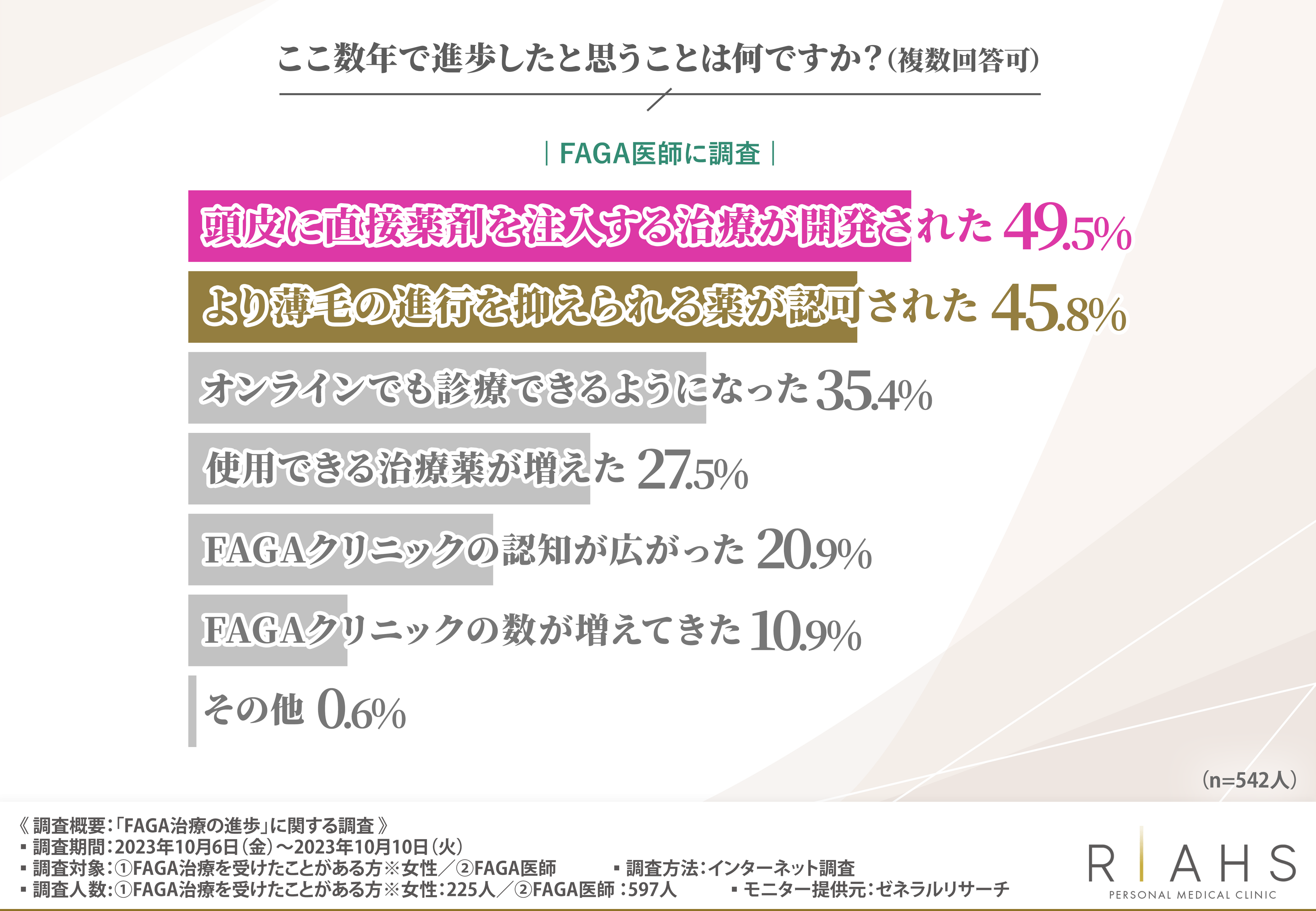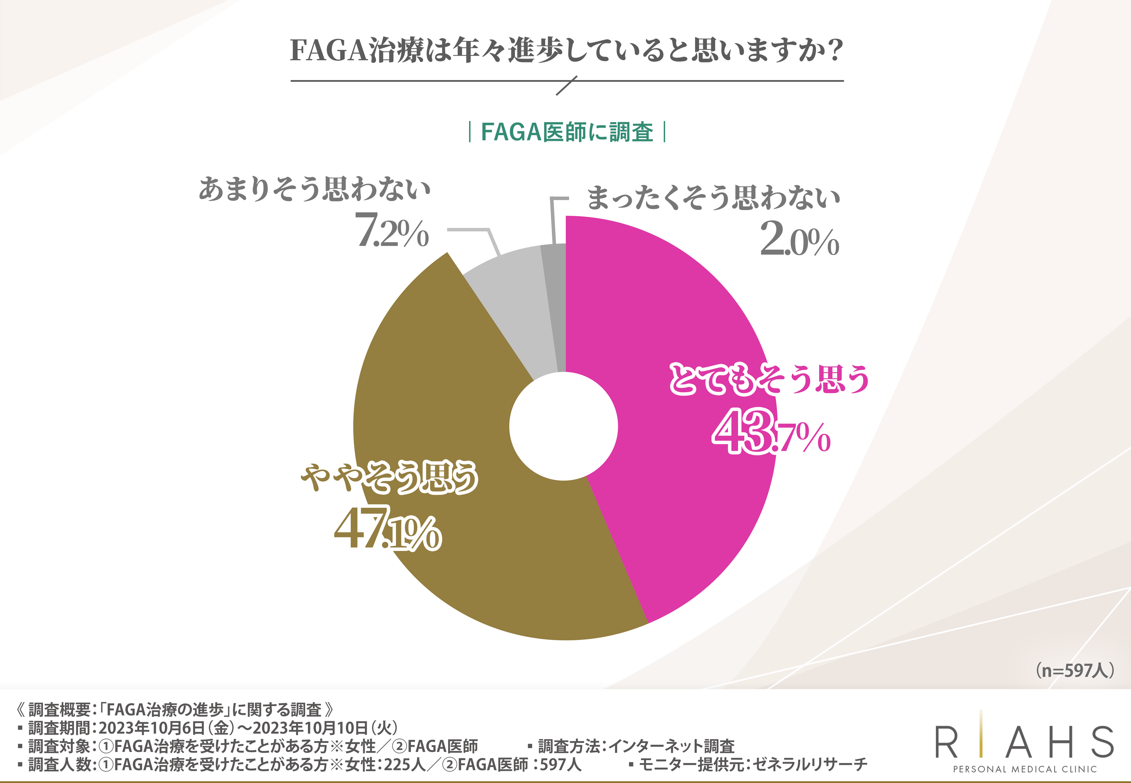 そこで今回、発毛専門の医療機関『リアスクリニック』(https://riahsclinic.com/)は、FAGA治療を受けたことがある方とFAGA医師を対象に「FAGA治療の技術進歩」に関する調査を実施しました。