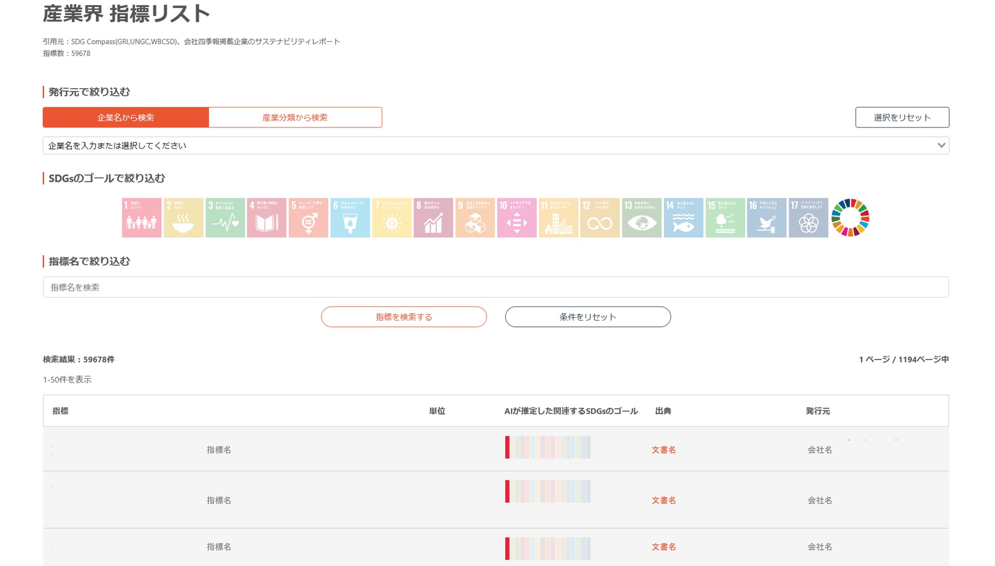 機能④ SDGsに関する取り組みを検証する指標の検索(Follow up & Reviewページ)