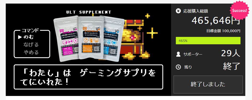 Makuakeで465%達成!不摂生ゲーマーのための「ウルトサプリ」5種類が一般販売開始