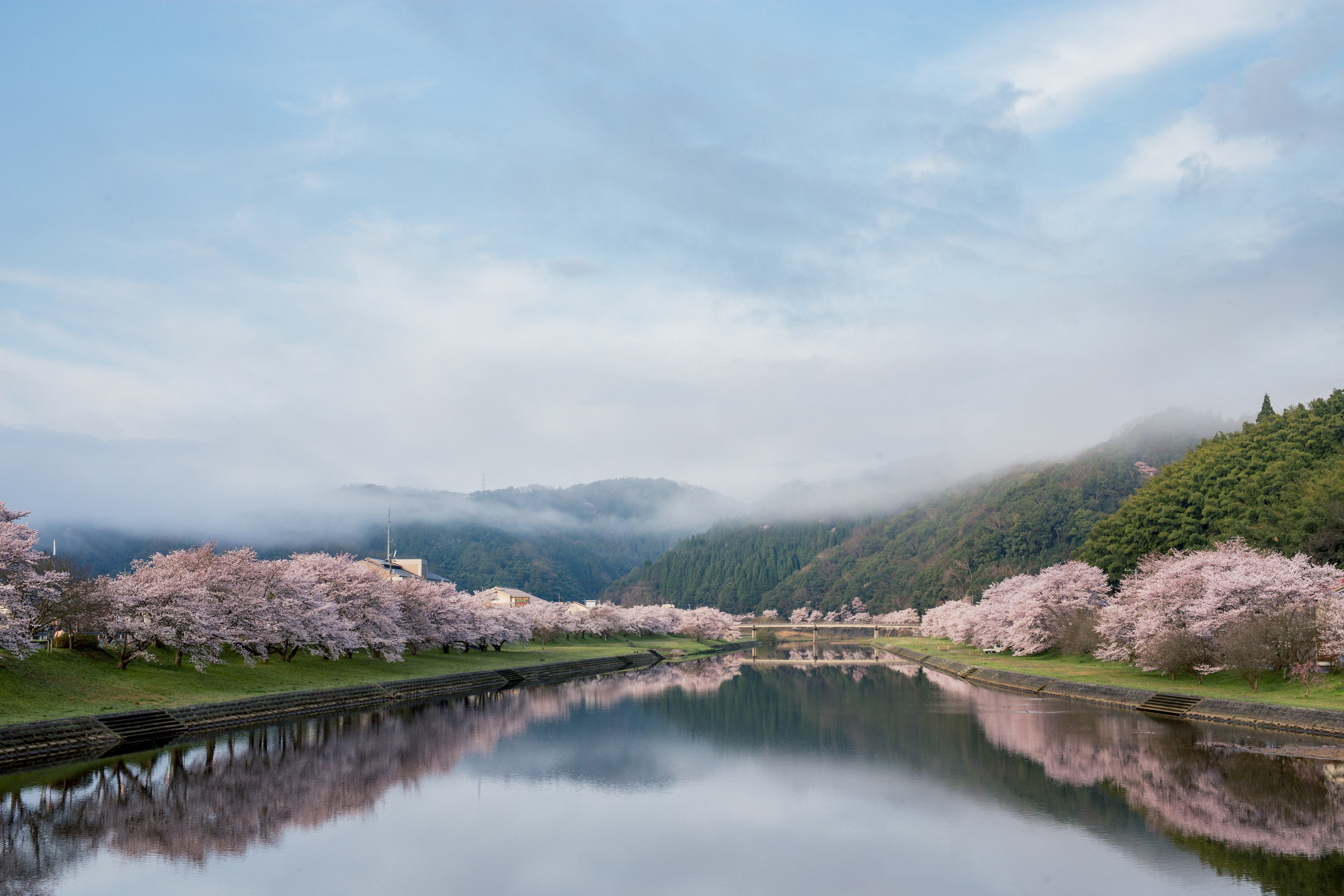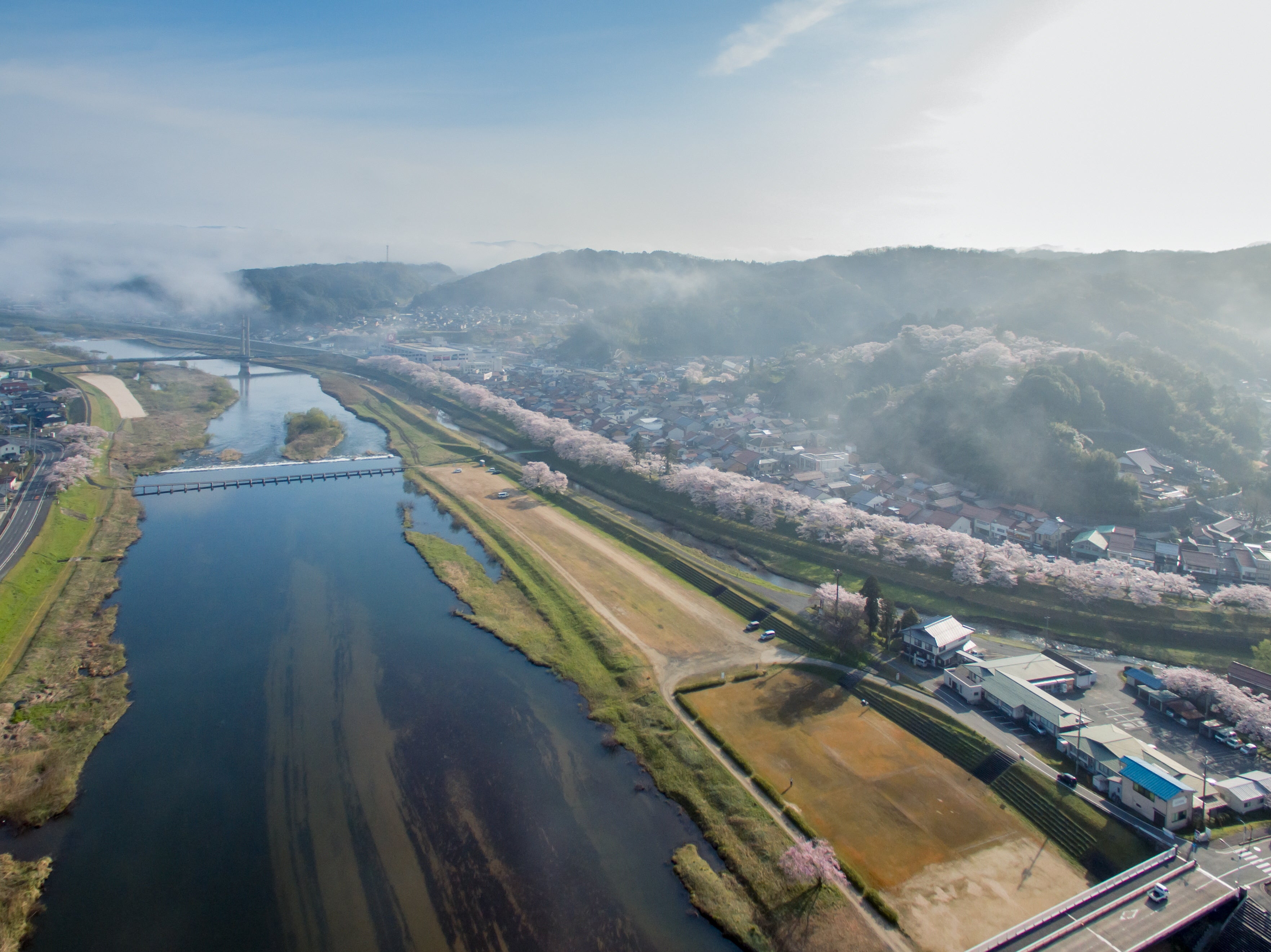 自然豊かなまちで、春には満開の桜並木が見れたり、夏には山王寺の緑いっぱいの棚田や龍頭ヶ滝、秋には紅葉、冬は雪が降り積もり、春夏秋冬楽しめます。特に桜並木と棚田、滝はそれぞれの日本100選に選ばれているほどの絶景となっています。
