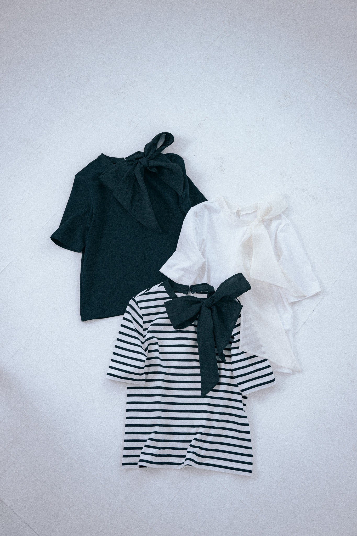 〈ボウタイデザインTシャツ(ホワイト、ブラック、ボーダー)税込¥16,500〉