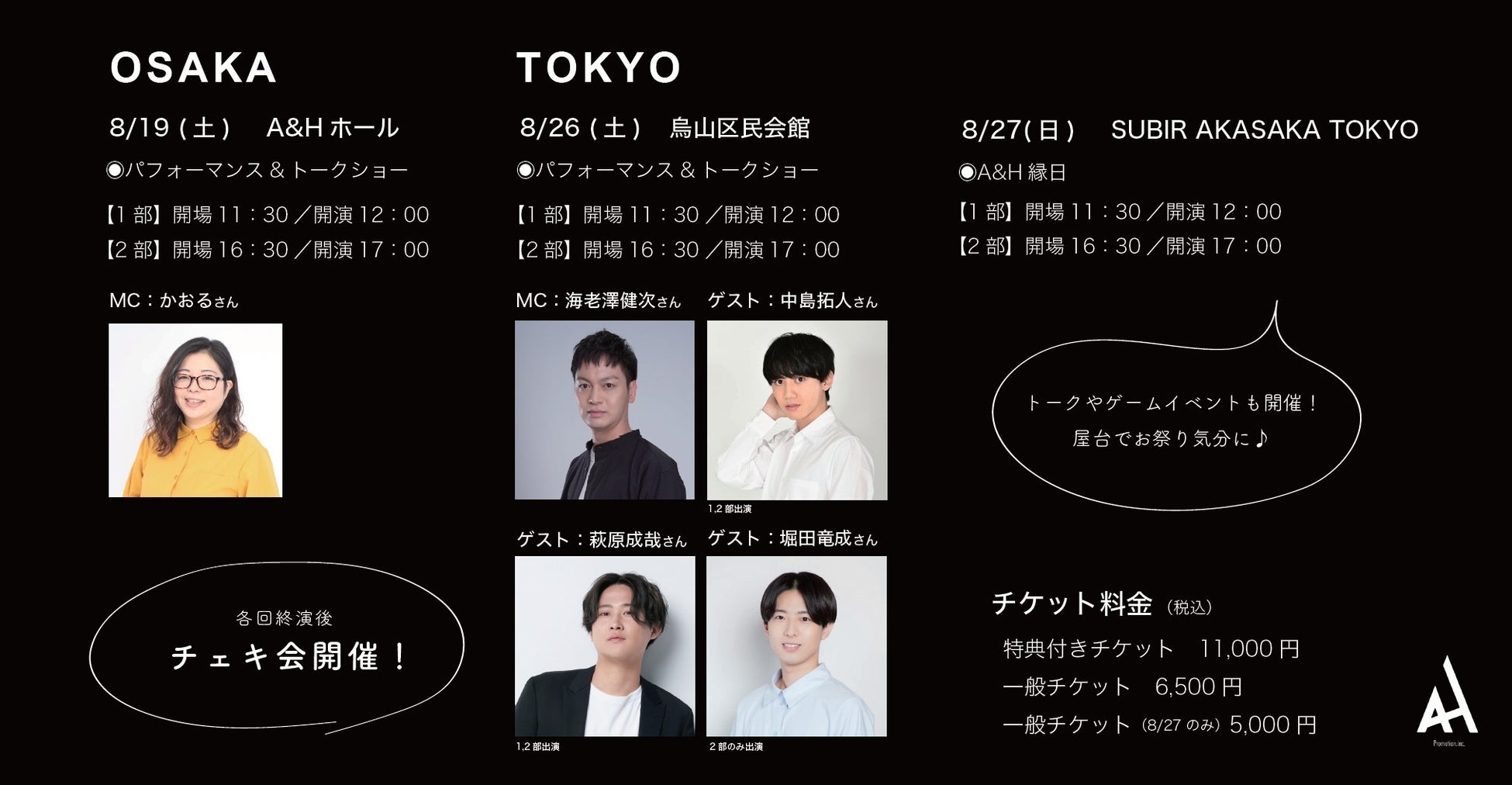 昨年開催され大好評を得たvol.1に引き続き、今年もvol.2の実施が決定した。本イベントはA&Hに所属する全てのタレントが出演となる。