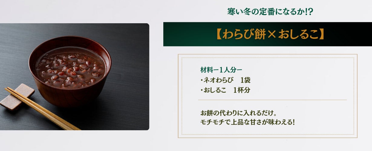 より贅沢なひと時を過ごしていただきたいという想いから、シリーズ新商品としてNEOわらび餅の「抹茶味」を開発いたしました。