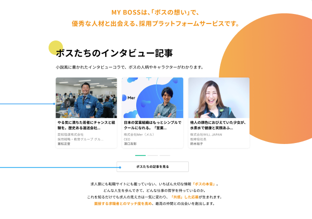 ボスのインタビュー記事を通して、本当に働きたいと思う会社を見つけることが出来ます。