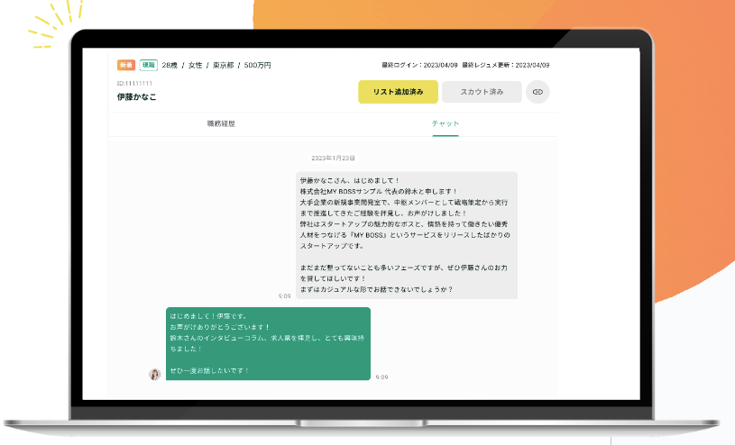 あなたの登録したレジュメを見たボスから、求人スカウトが届きます。