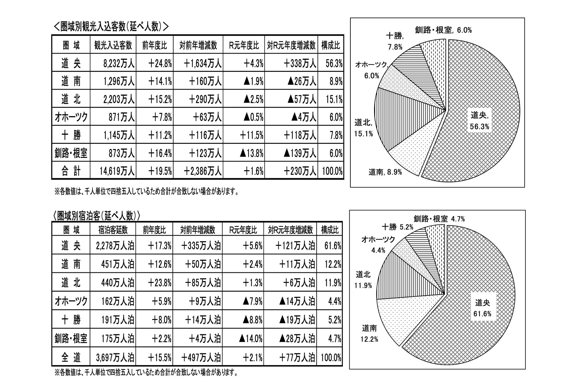■北海道(オホーツク、釧路・根室地域)を訪れる観光客数の推移